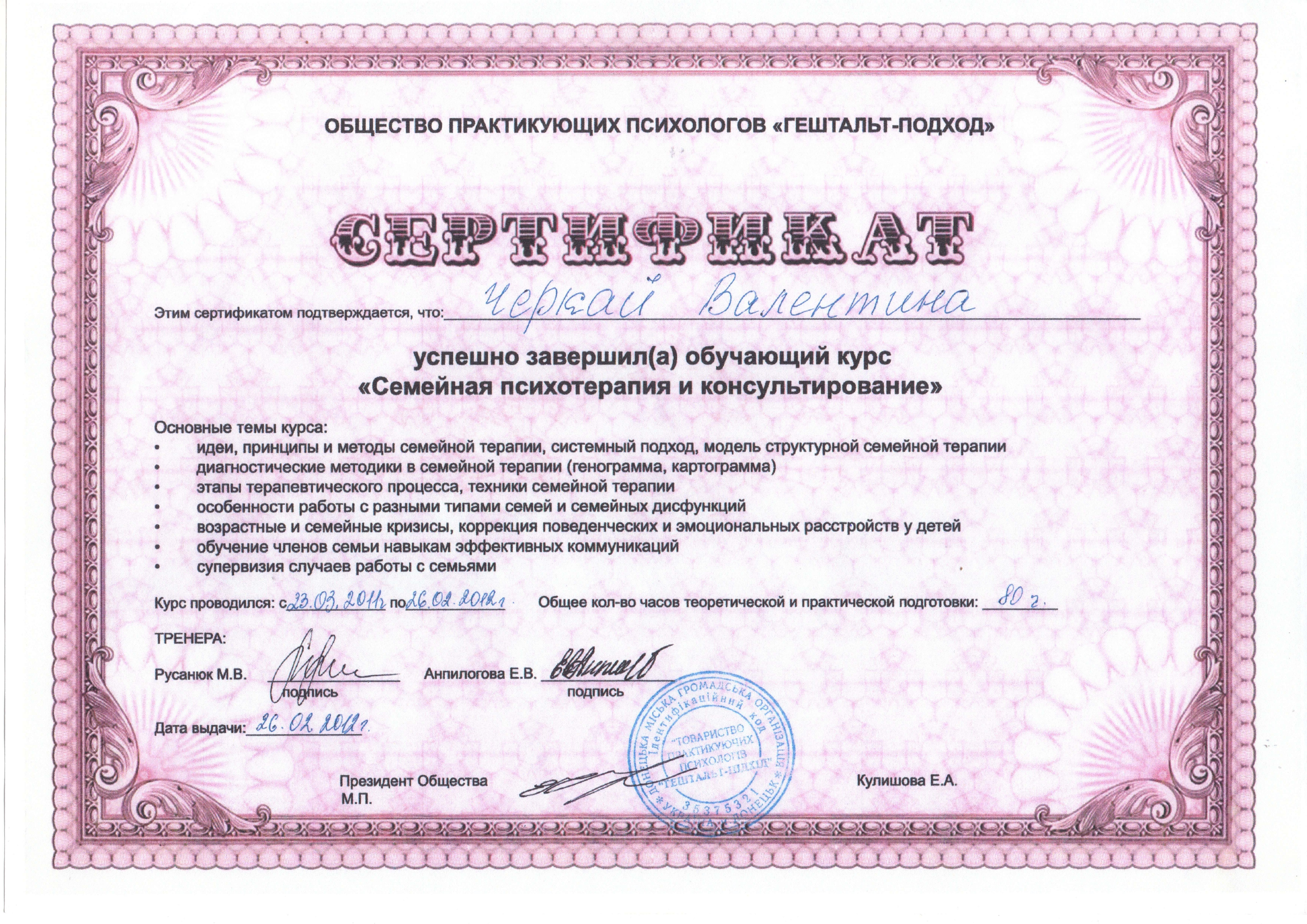 Сертификаты:
