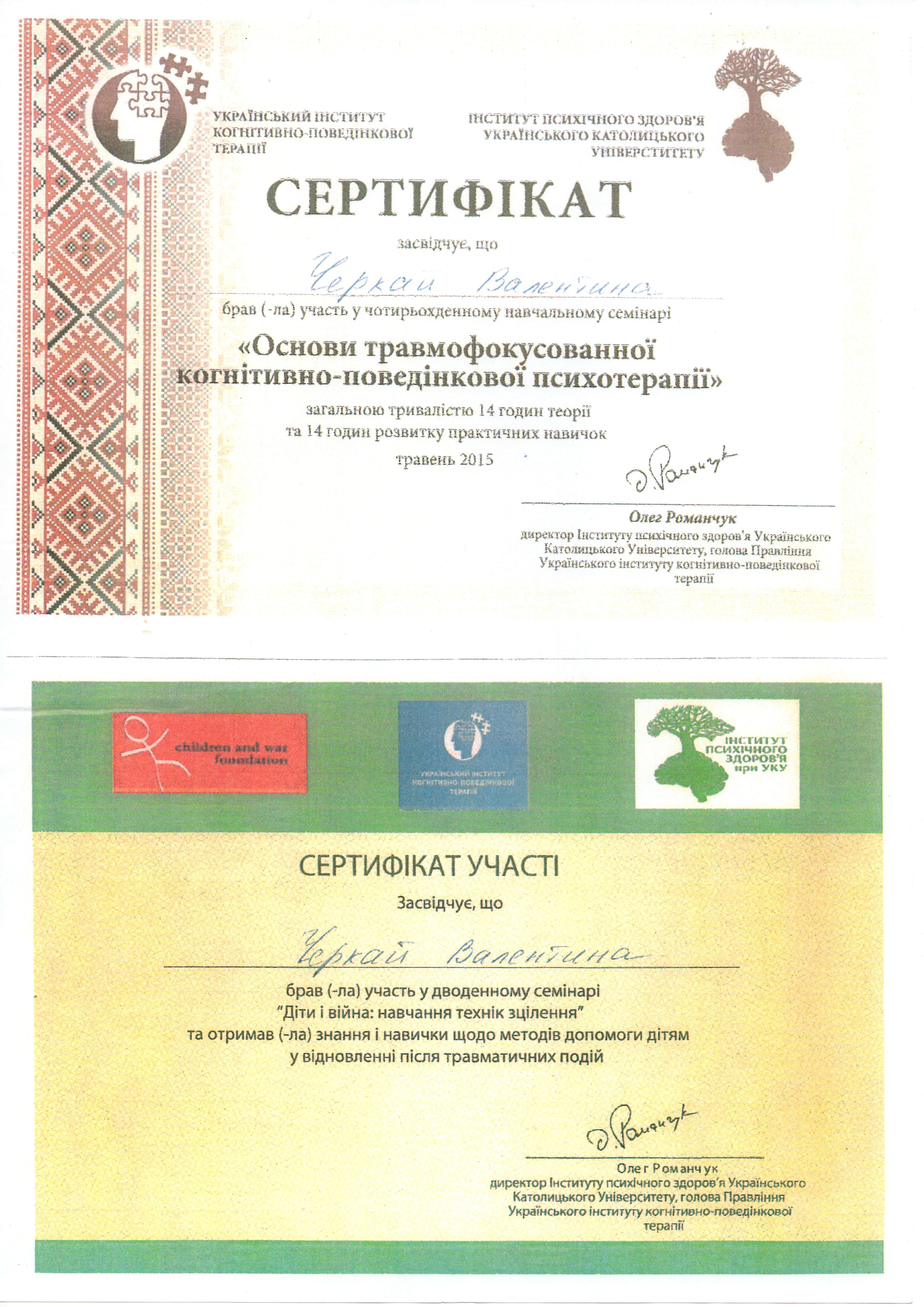 Я Валентина Черкай, живу в Краматорске и работаю в Украине и России, очно и онлайн. Путь становления как профессионала начался в этом же городе обучаясь в Краматорском машиностроительном техникуме и первую профессию я освоила, получив диплом технолога по обработке металлов резанием и в добавок маленький дипломчик, в котором маленькими буквами было дописано- токарь второго разряда! После поступила в ДГМА на факультет "Финансы и кредит" где окончательно уверилась ,что все это точно не мое. Это были славные 90е и работала тогда я где только была работа, начиная от уборщицы закнчивая зам.директра в ЧП, после пришла Москва и жизнь там(очень интересный квест о выживании без сохранения), поиски себя в профессии продолжились и там, привели они меня в Институт Психоанализа и дальше не было и года что бы мой интерес к психологии угас, снова и снова открываю для себя новые возможности!.