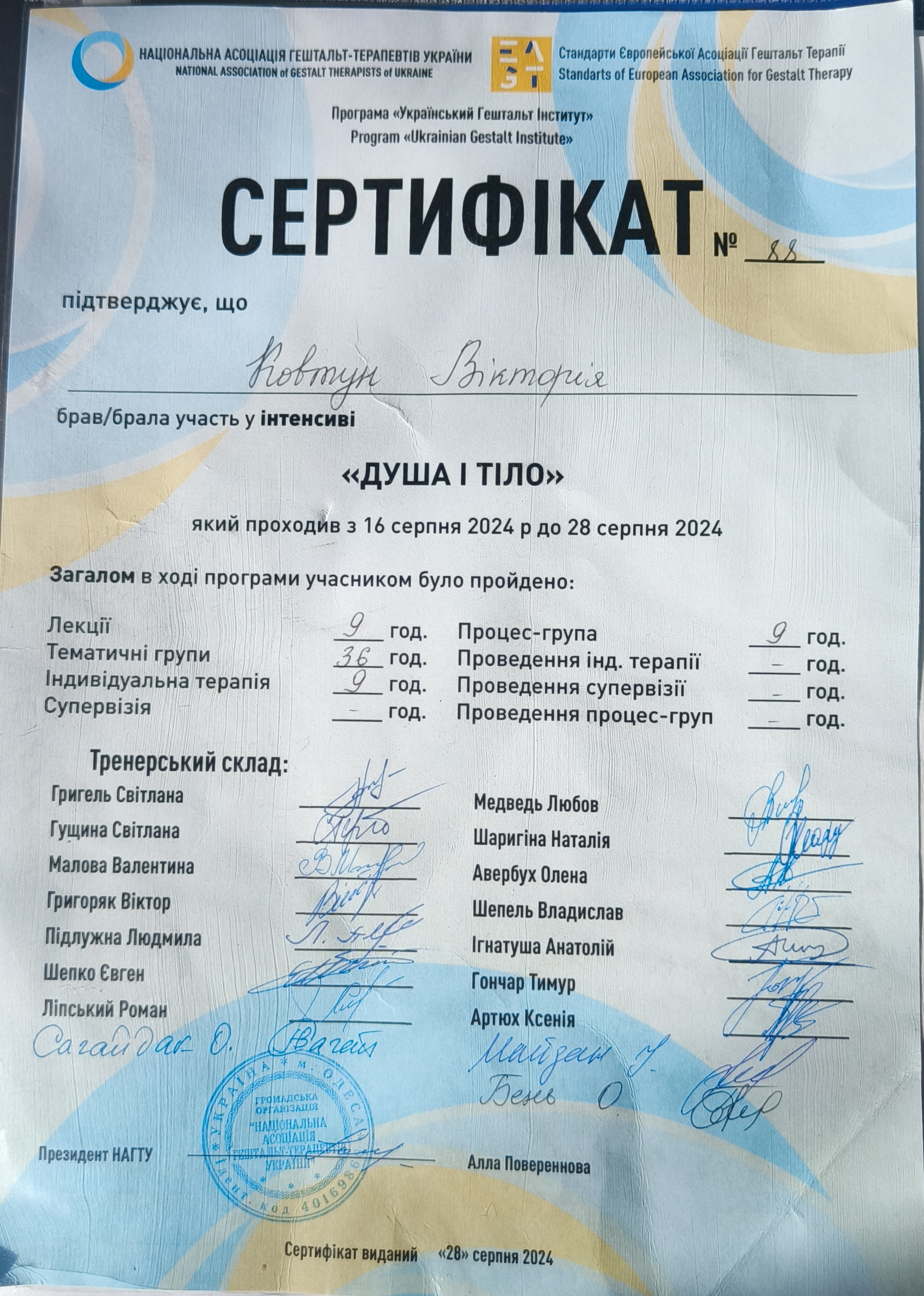 Национальная ассоциация гештальт терапевтов Украины – кандидат в психотерапевты