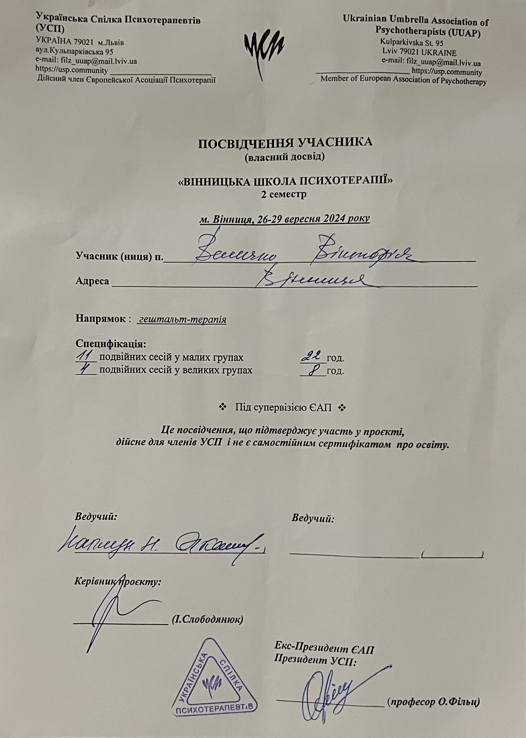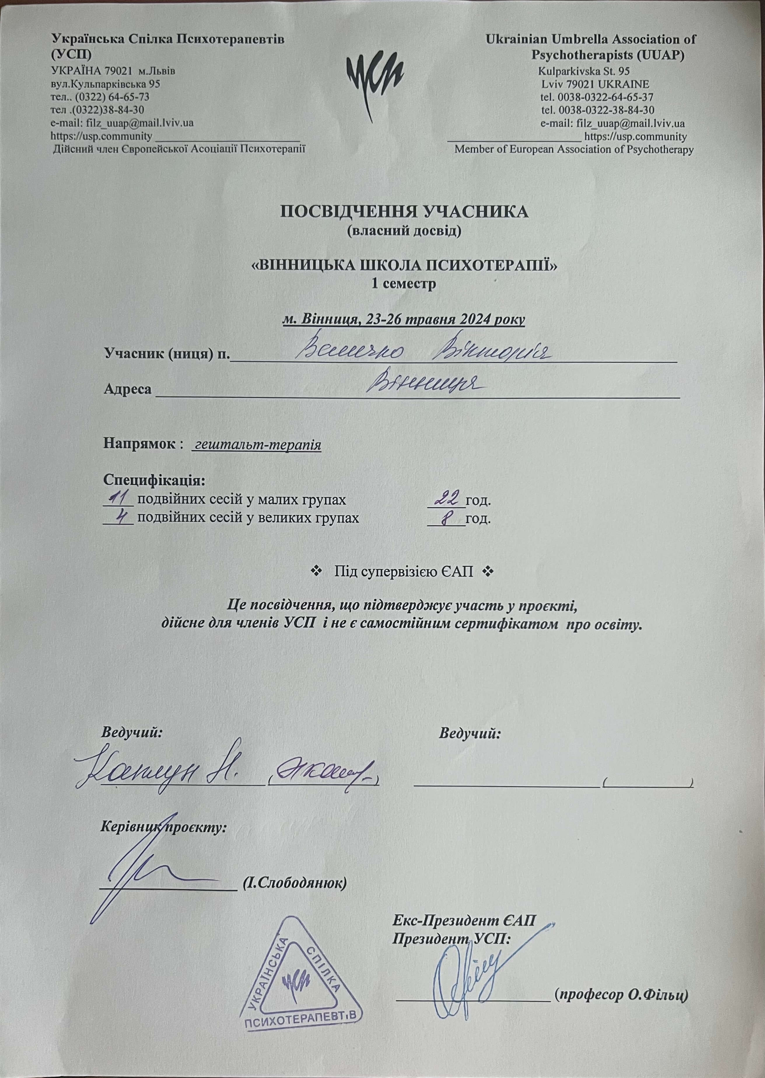 Начала обучение на групповом гештальте психотерапевта в УСП