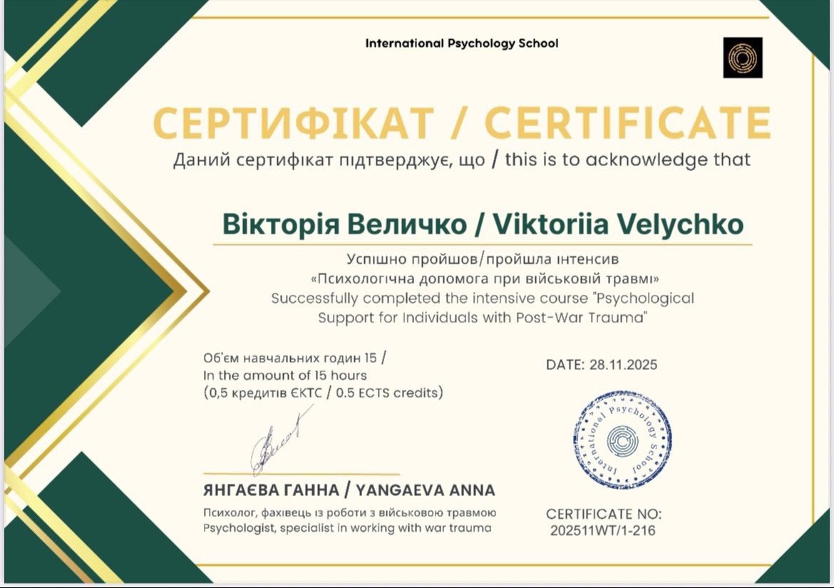 Меня зовут Виктория Величко – я психолог не по образованию, а благодаря своему прошлому. Конечно дальше я уже
