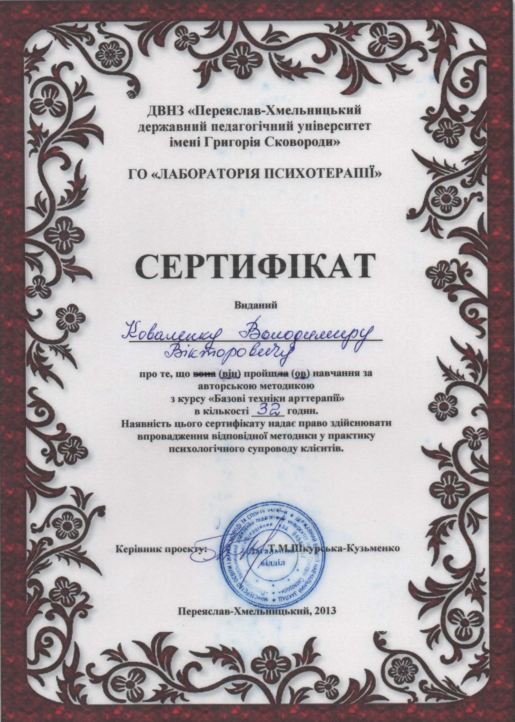 ДВНЗ «Переяслав-Хмельницький державний педагогічний університет імені Григорія Сковороди» та ГО «ЛАБОРАТОРІЯ ПСИХОТЕРАПІЇ»