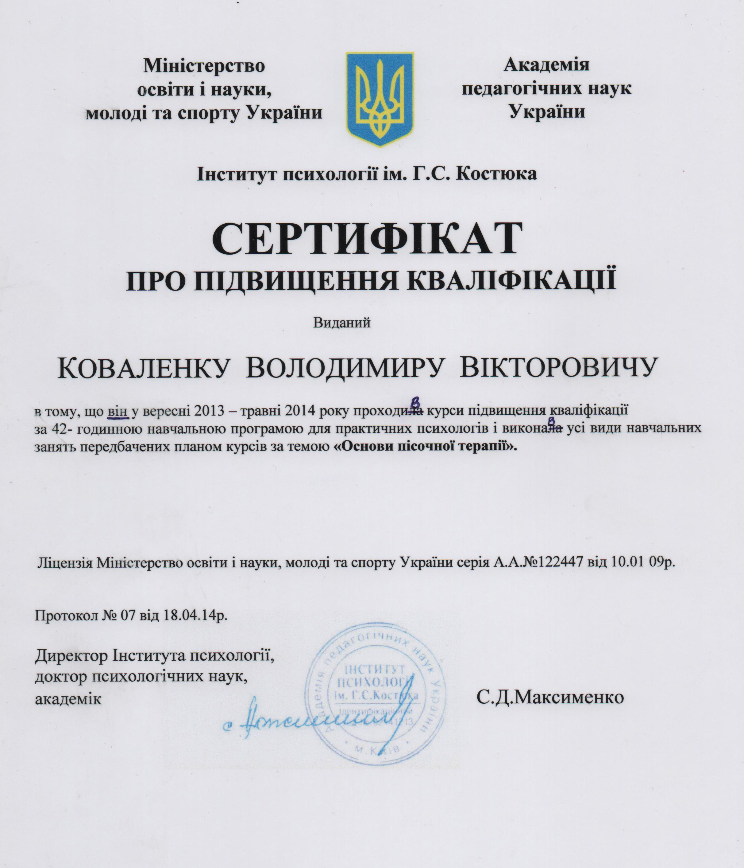 Курс повышения квалификации "Основы песочной терапии" ("Институт психологии им. Г. С. Костюка");