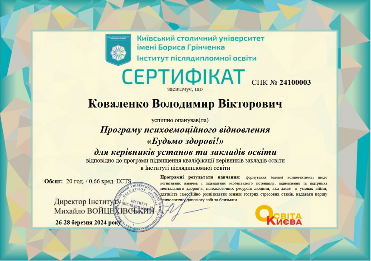 Програму психоемоційного відновлення «Будьмо здорові!» для керівників установ та закладів освіти