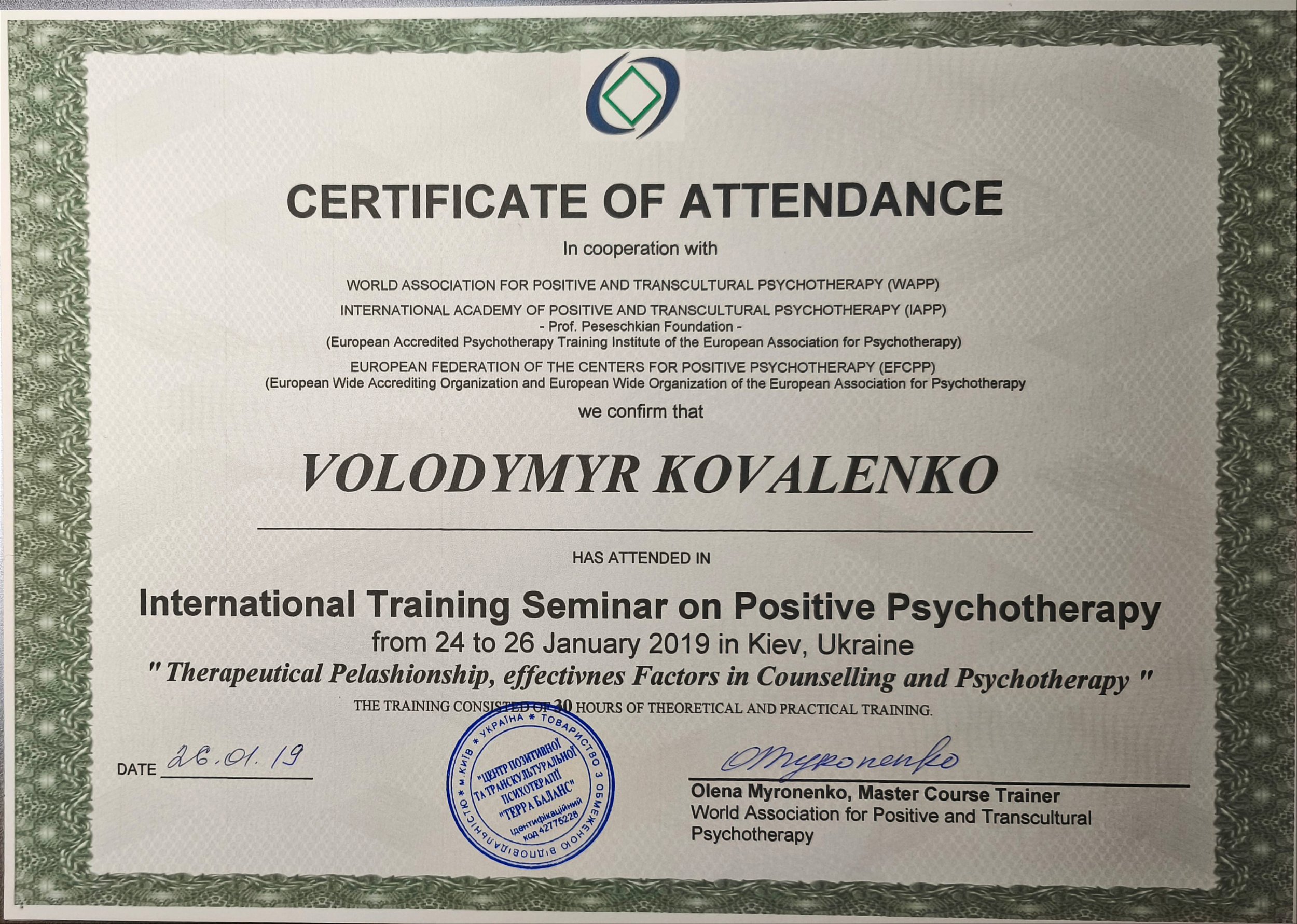 BASIC CONSULTANT OF POSITIVE PSYCHOTHERAPY (Basic Training)