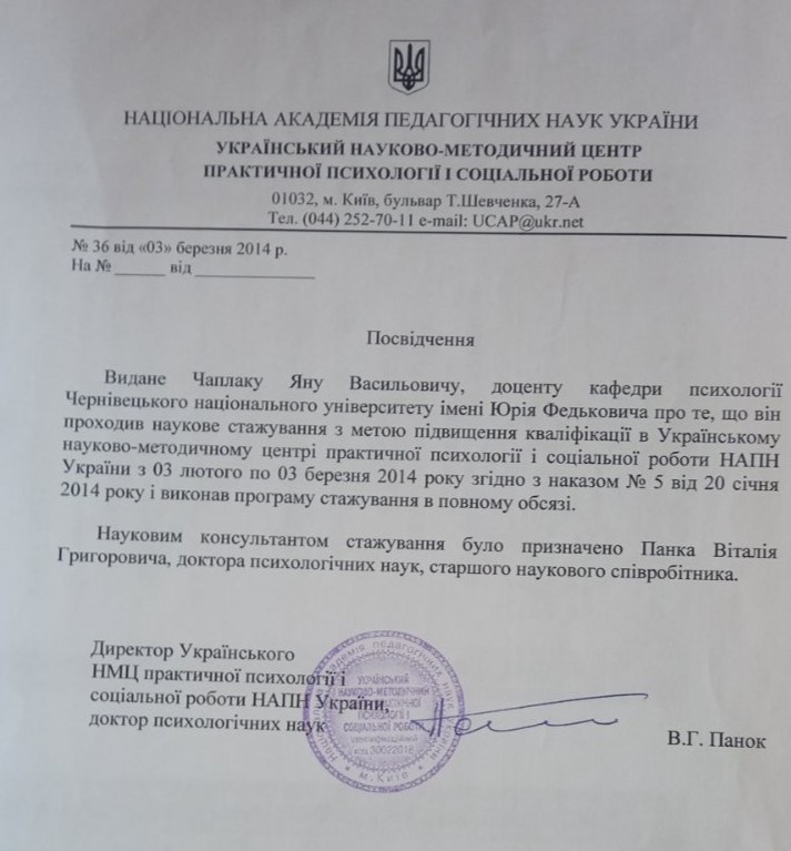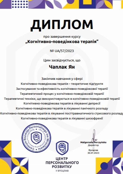 Практикующий психолог-консультант, кандидат психологических наук, доцент кафедры психологии факультета педагогики, психологии и социальной работы Черновицкого национального университета имени Юрия Федьковича, член ГС "Национальная психологическая ассоциация", член Украинской ассоциации когнитивно-поведенческой терапии (УАКПТ).