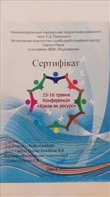 Университет им. Ушинского кафедра психологии, Гештальт институт. Специализации по конфликтологии и сексологии.