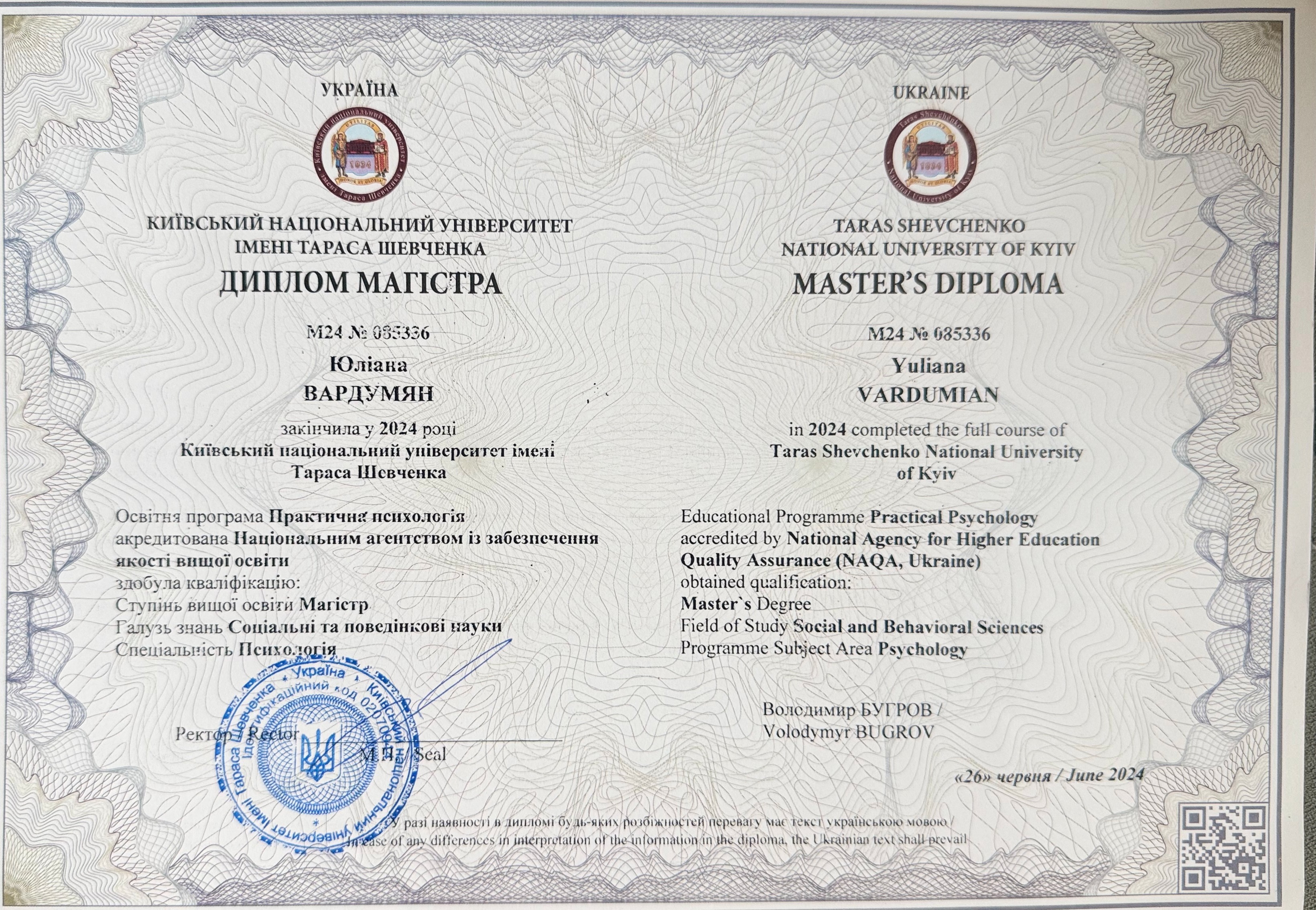 Высшее образование Киевский национальный университет имени Тараса Шевченко Психология