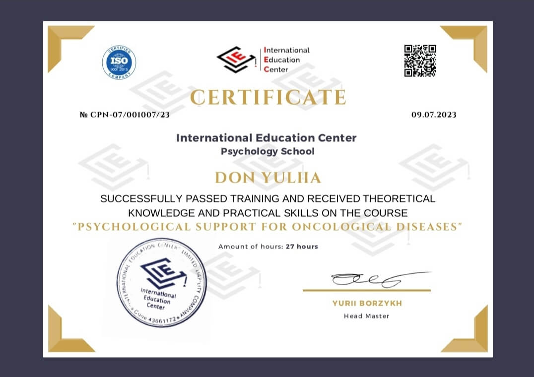 Меня зовут Юлия. Мой путь начался из медицины. За плечами 14 лет работы в онкологии, там я и поняла что могу сделать больше для онко пациентов и их родственников. И с 2013 года начался мой путь не только как медика но и как психолога.