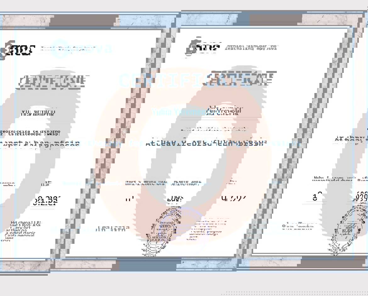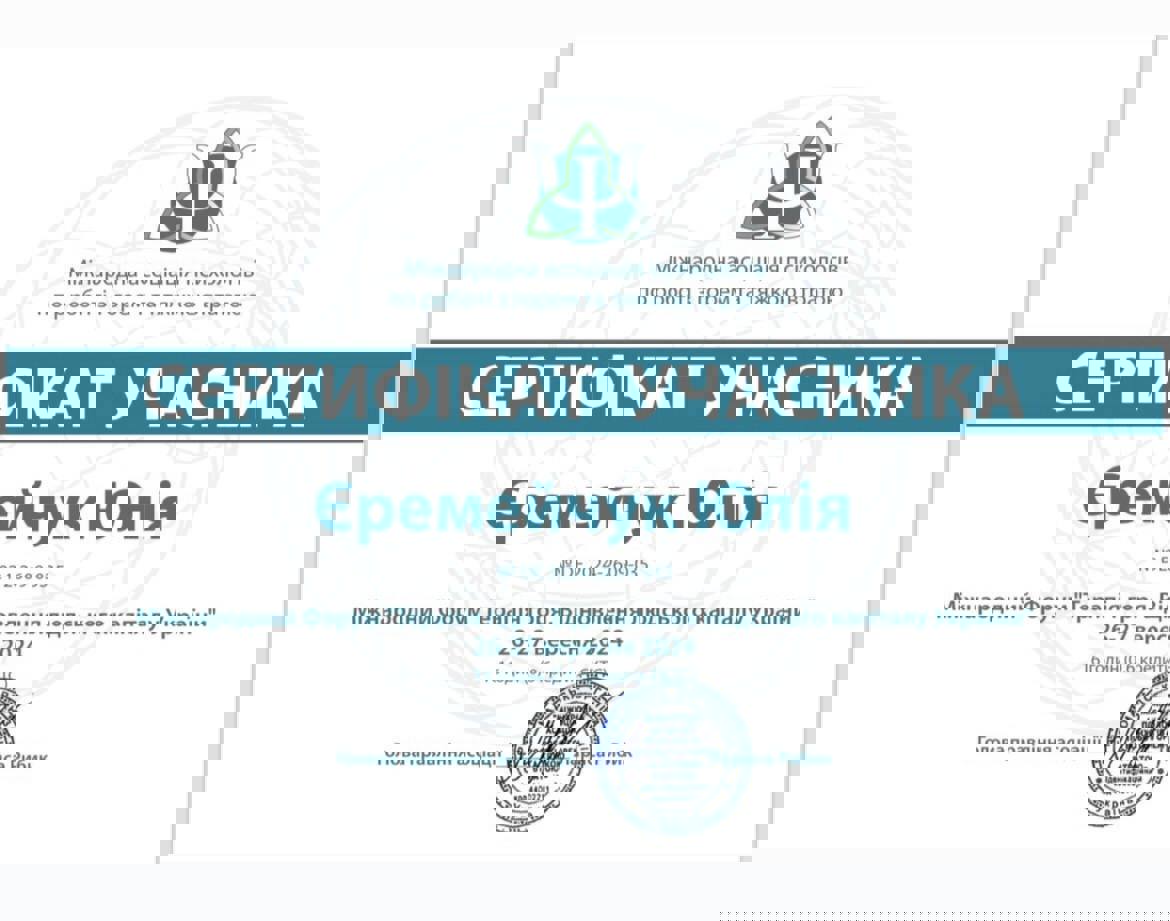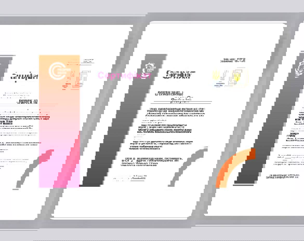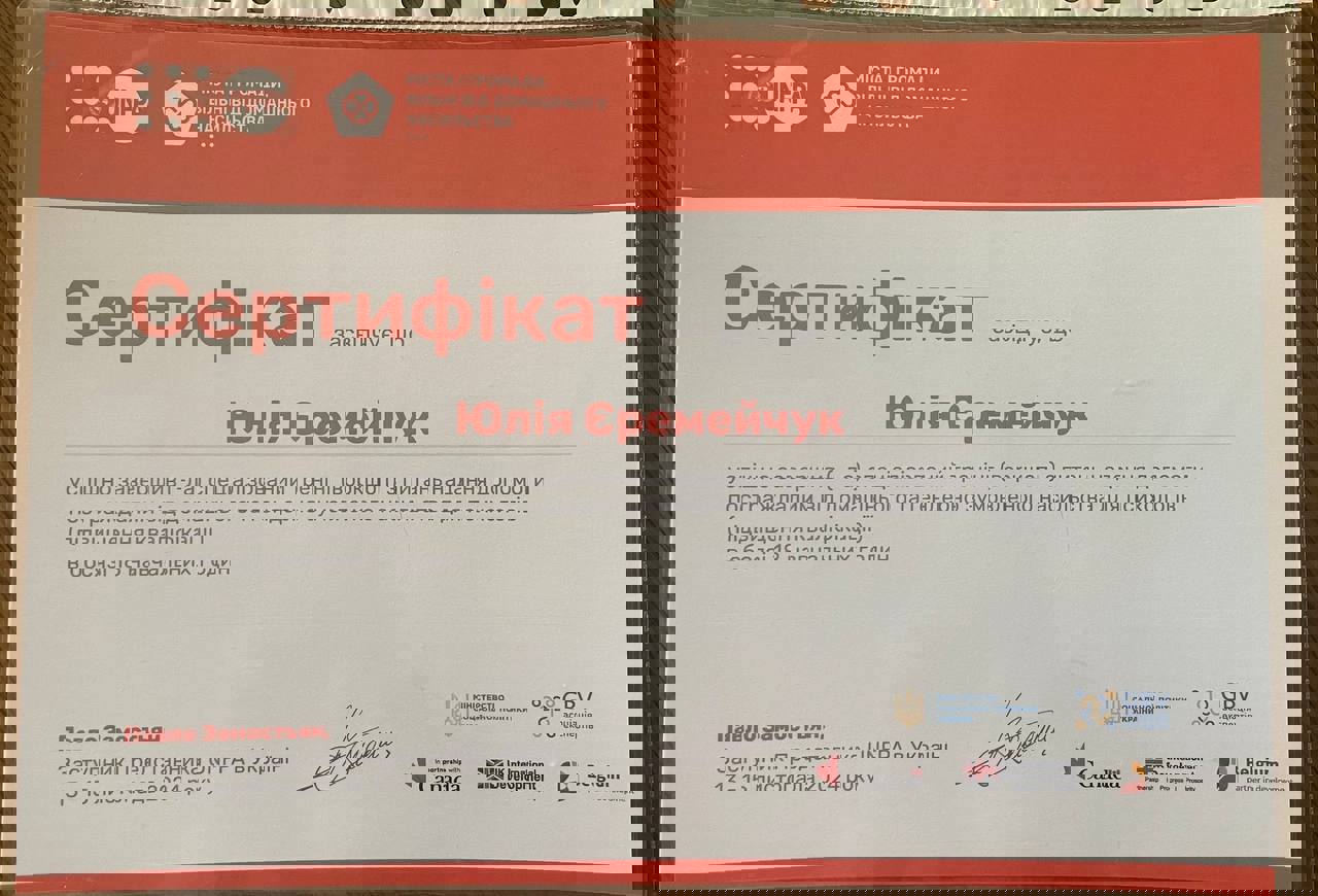 Запорожский Национальный Университет с 2008 по 2013 год, специальность практический психолог. Диплом АР №45191159