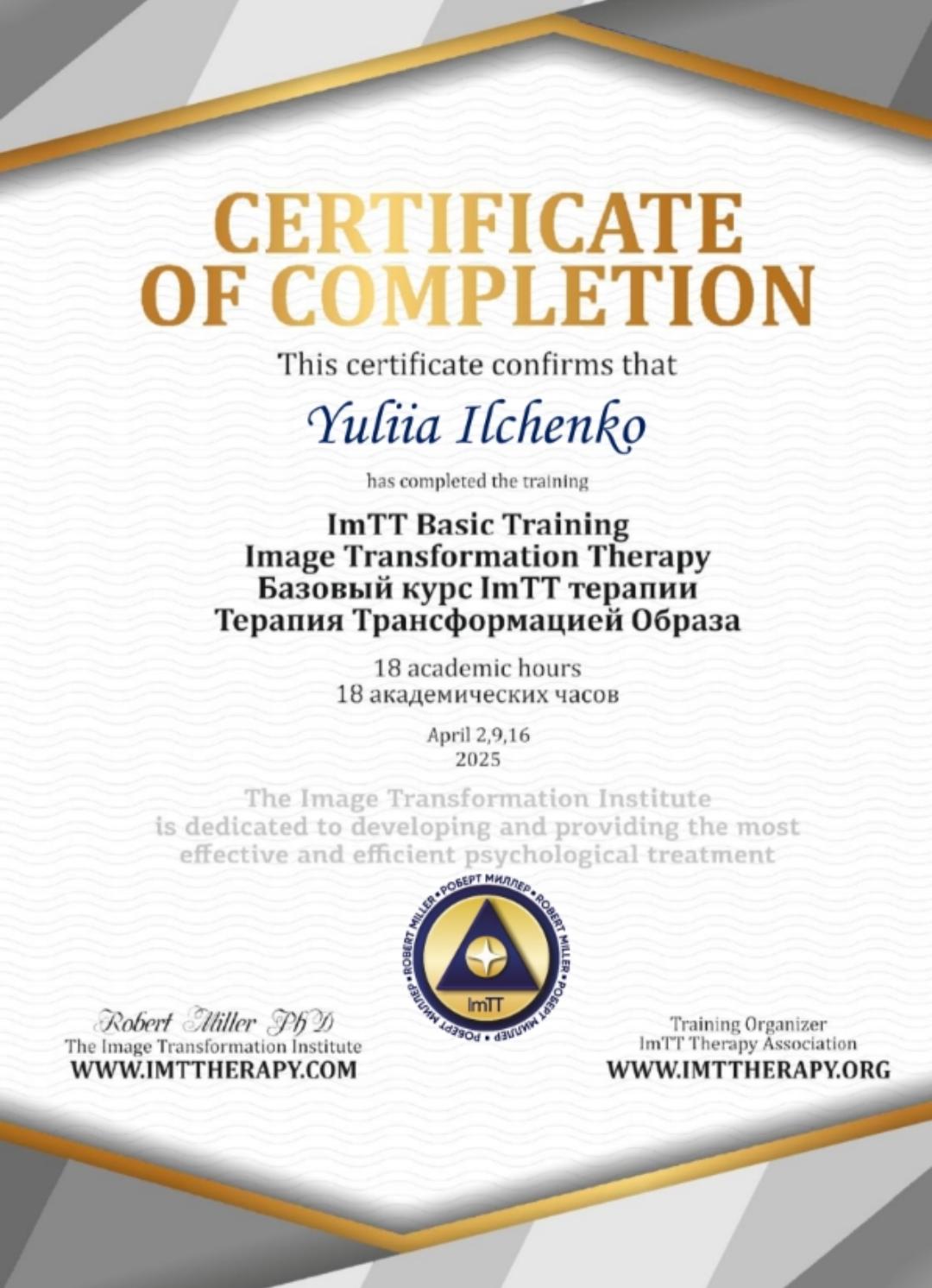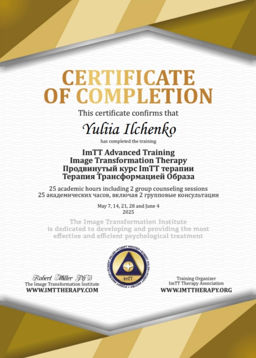 • ImTT Therapy Organisation, 2025 – продвинутый курс ImTT терапии трансформацией образа.
