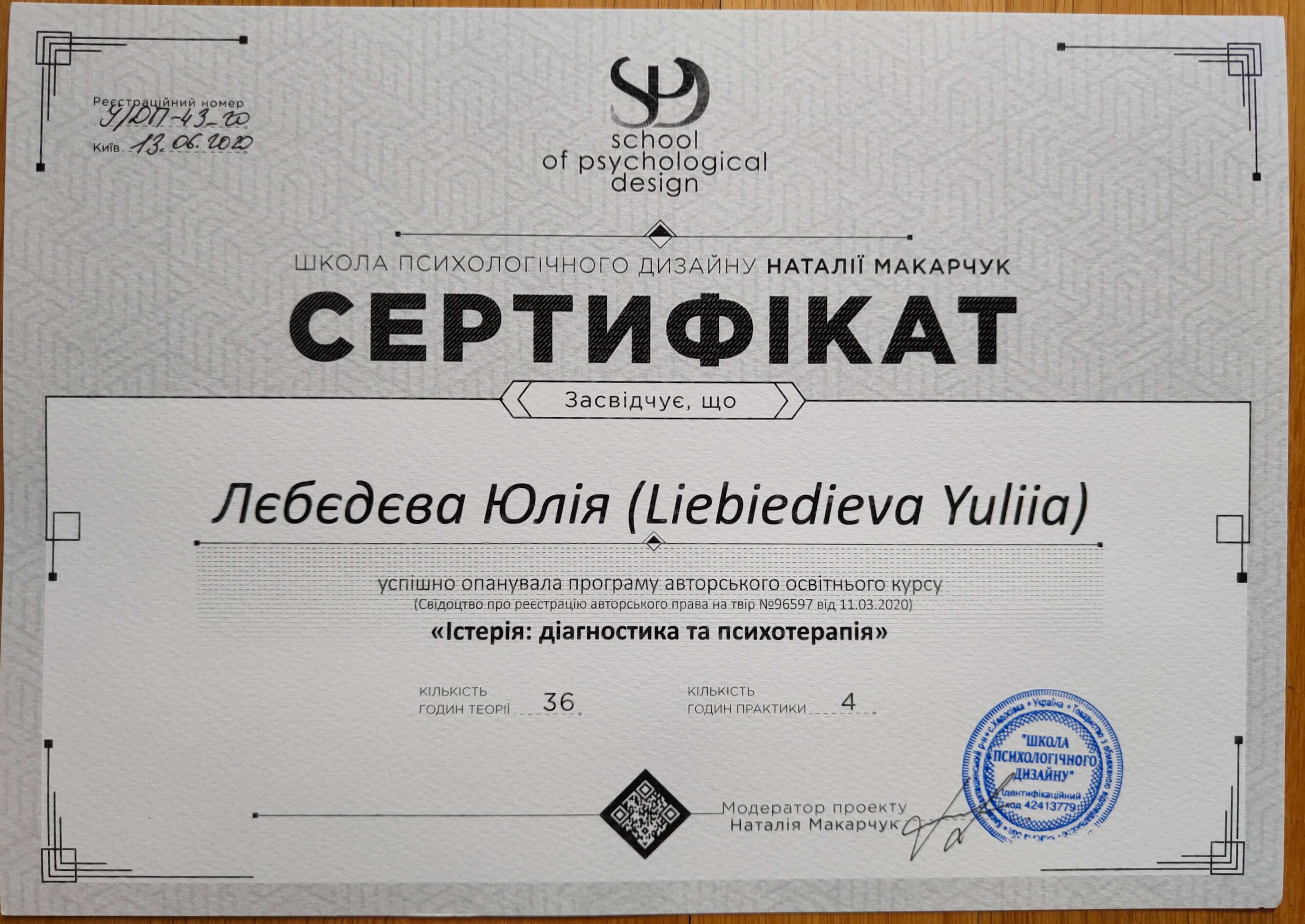 Прошла курс психологическое консультирование: теория и практика в Школе Психологического дизайна Натальи Макарчук