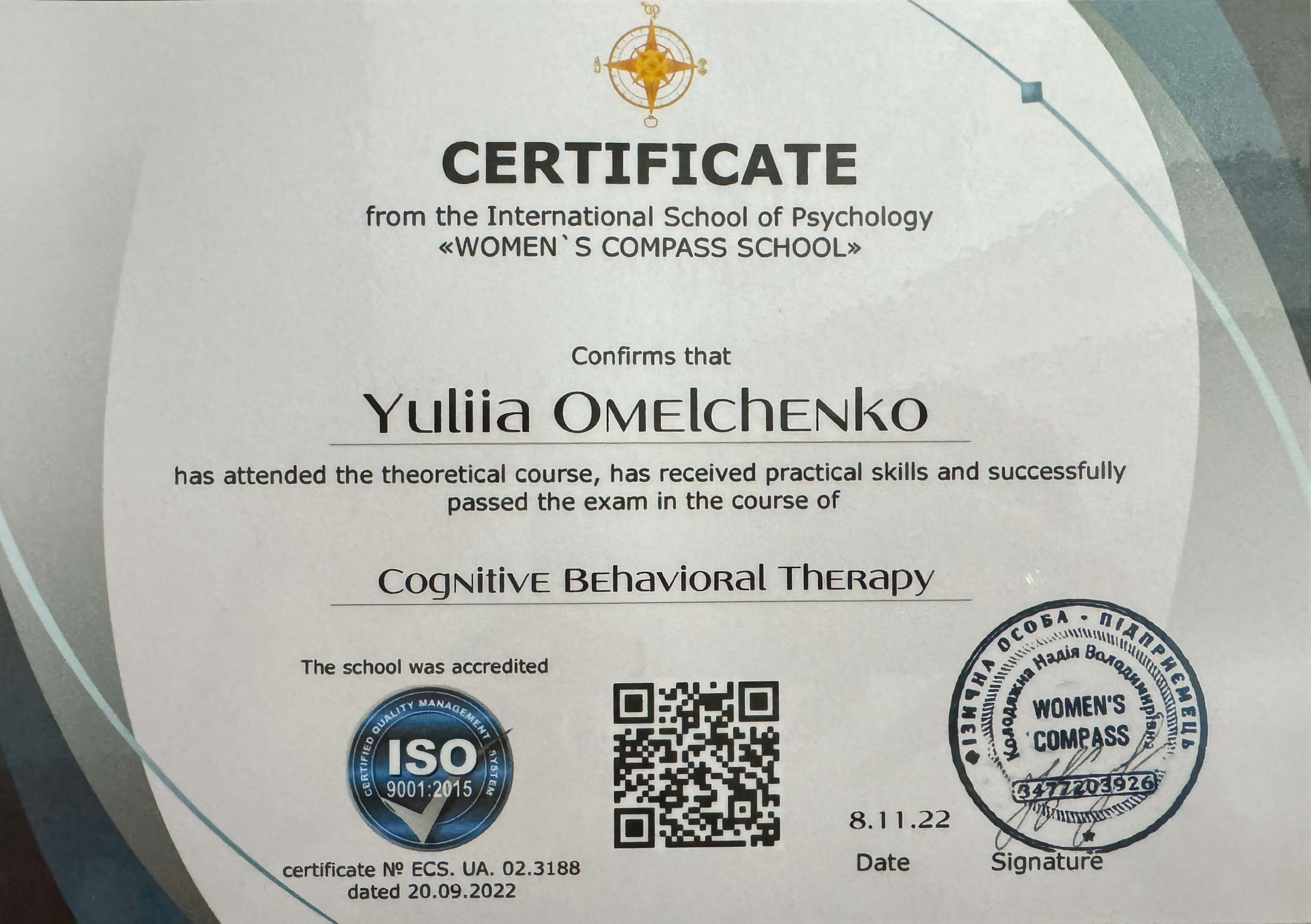 - Международная школа психологии "Women's compass school": Когнитивно-поведенческая терапия.
