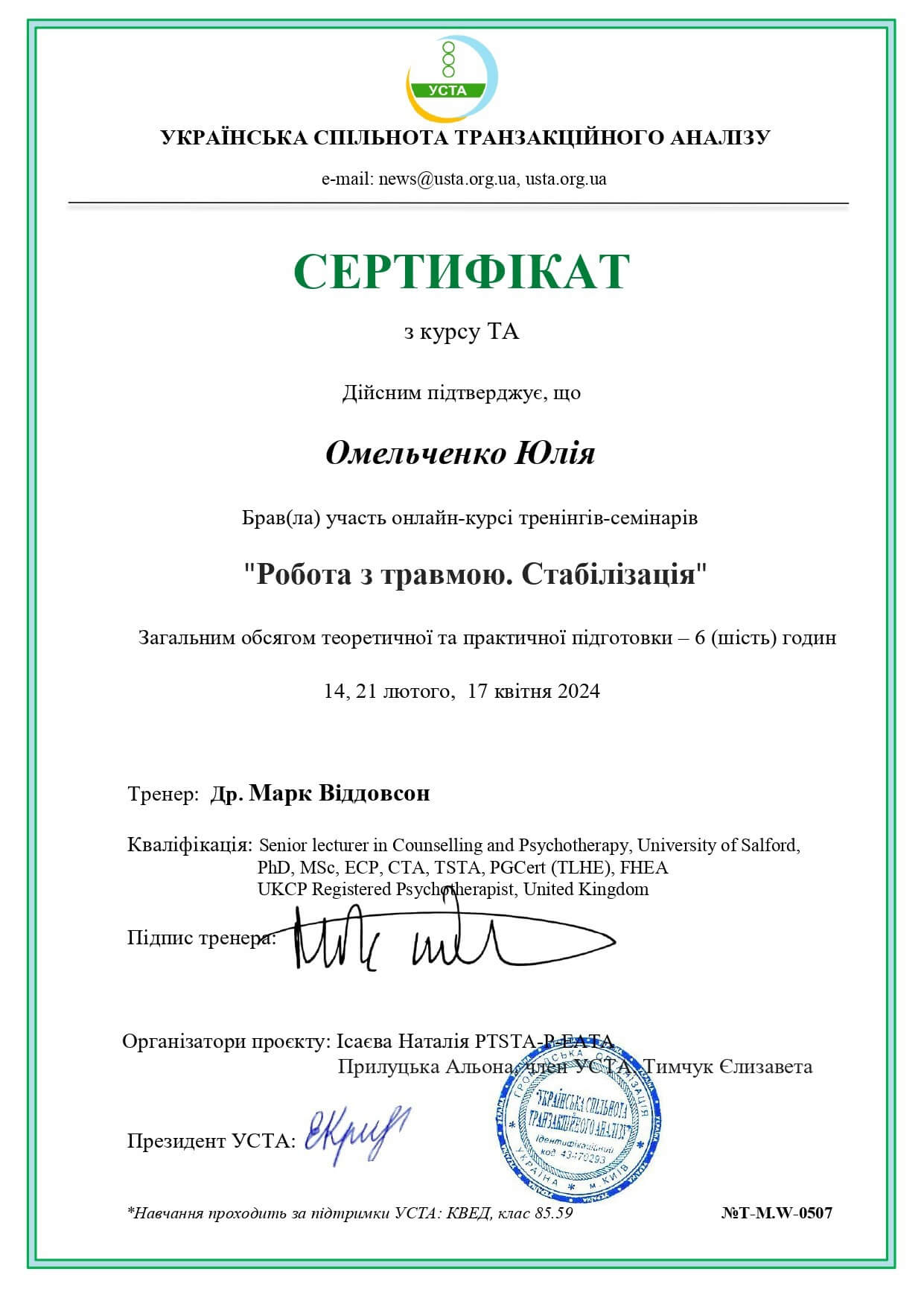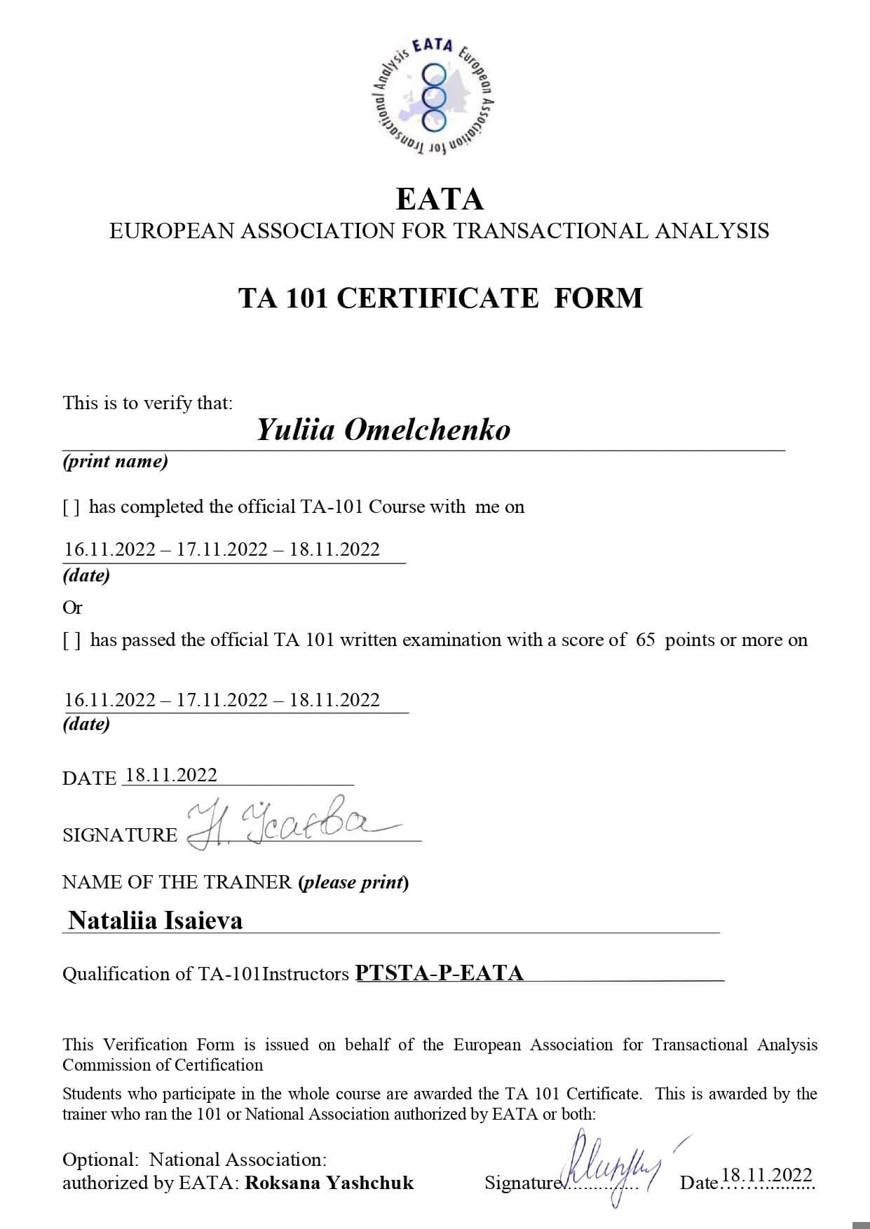 - УСТА – завершаю обучение на 2 курсе 202 Международного курса "Транзакционный анализ в психотерапии".
