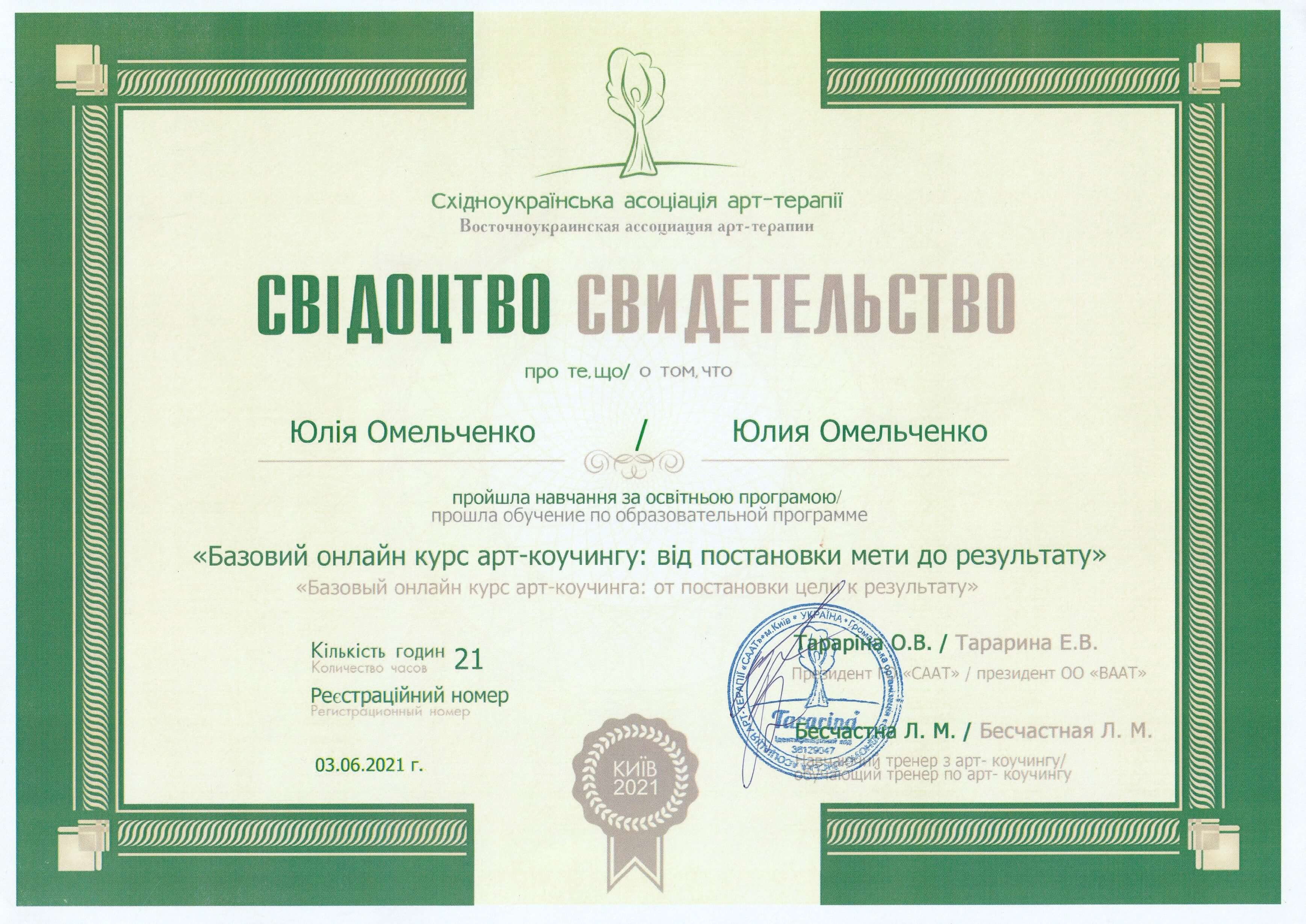 - Восточно-Украинская ассоциация арт-терапии: «Базовый курс арт-коучинга: от постановления цели к результату».