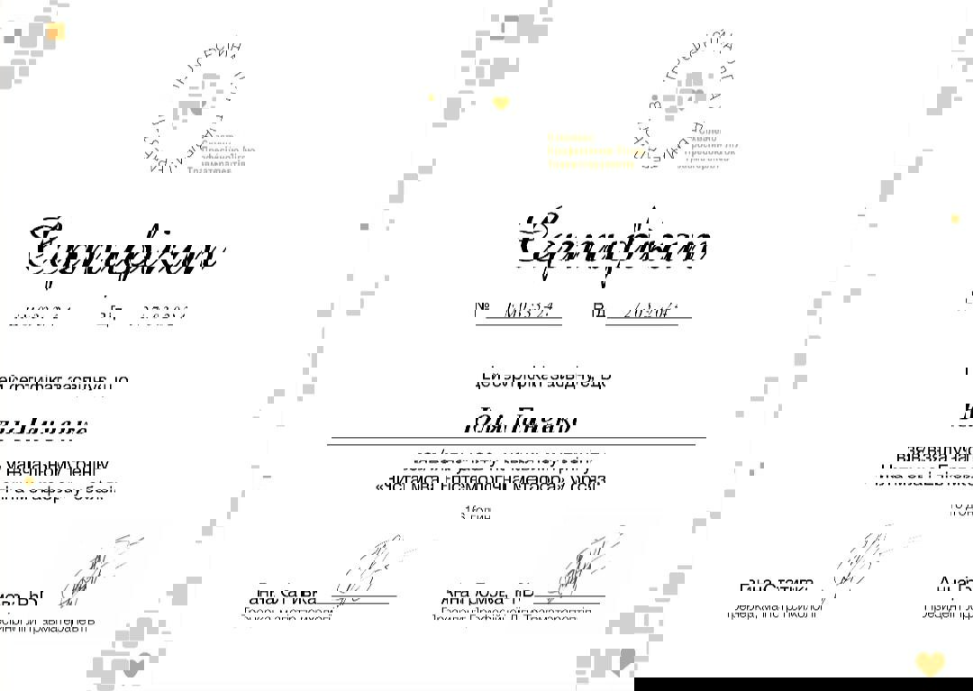 - Курс "Подготовка волонтеров, психологов и работников учебных заведений к основанному на инклюзии взаимодействию с психологически уязвимыми категориями граждан" ( Международный республиканский институт)