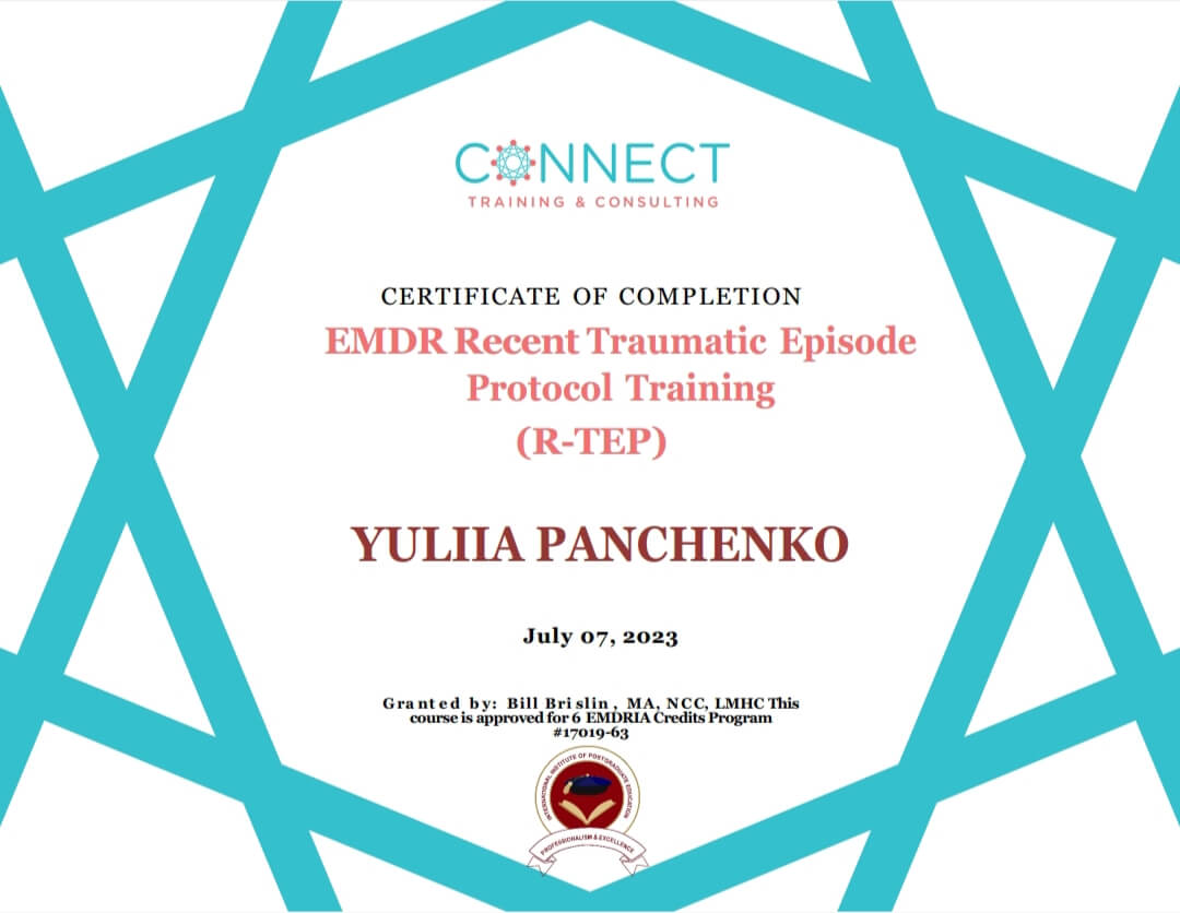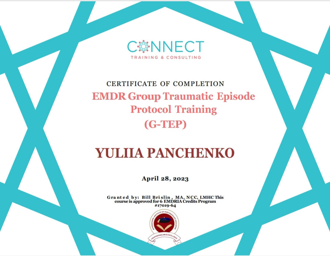 - курс EMDR + протоколы G-TEP, R-TEP (МИПО, украинско-американская программа),