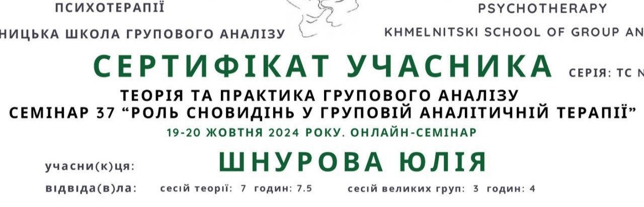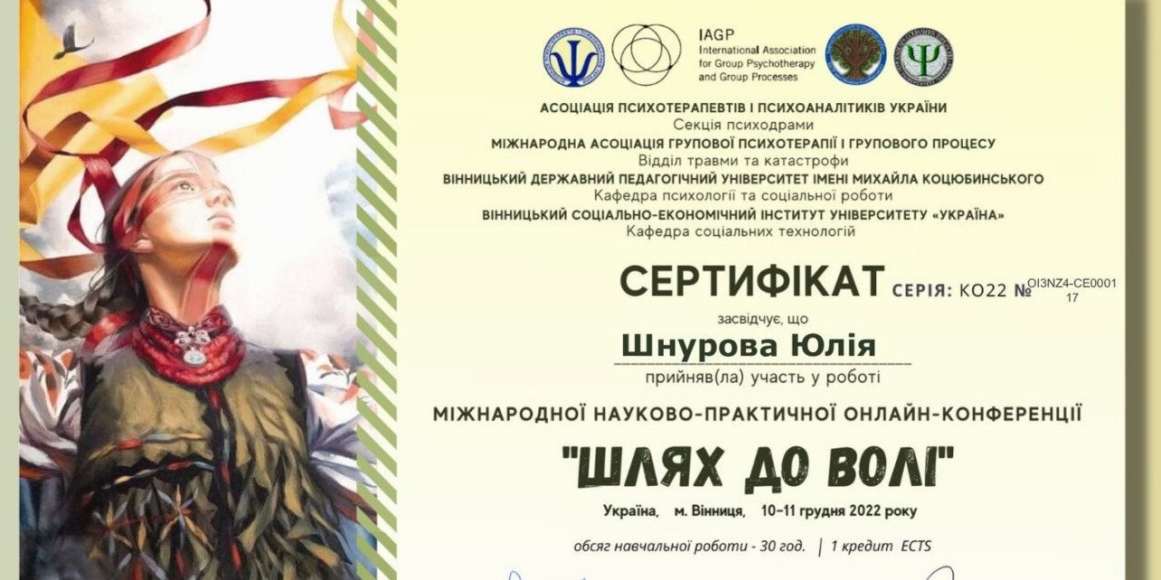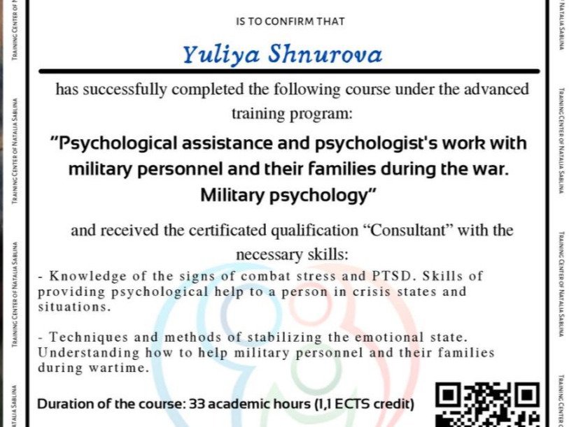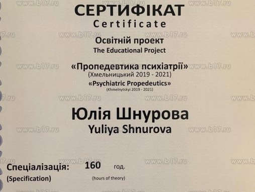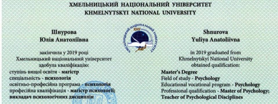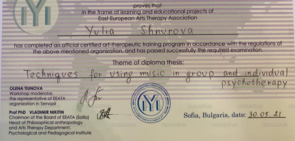 Имею три образования: педагогически-музыковедческое (НМАУ им. Чайковского) психологическое (ХНУ) и психотерапевтическое (EMTC)