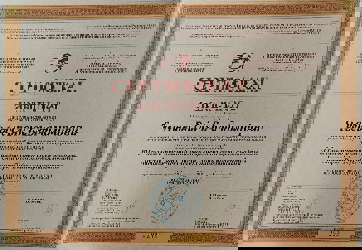 Окончила Одесский национальный университет имени И.И.Мечникова, специализация "клиническая психология", 2014 г., С23 № 005732. Диплом специалиста.