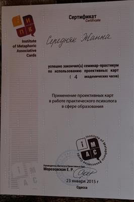 Свідоцтво ПП №00115 від "Метод аутогенного тренування в роботі психолога: психологічне розвантаження, психологічна допомога, саморегуляція".