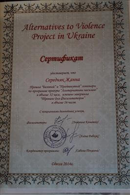 Выдан: Alternatives to Violens Project in Ukraine