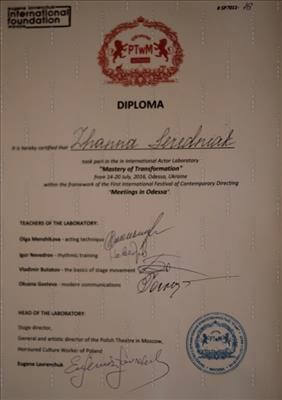 Выдан: Копайгора А.Е., директор Одесского академического русского драматического театра