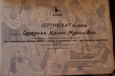 Выдан: Вознесенська О.Л., президент ВГО Арт-терапевтична ассоціація