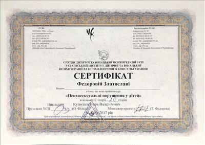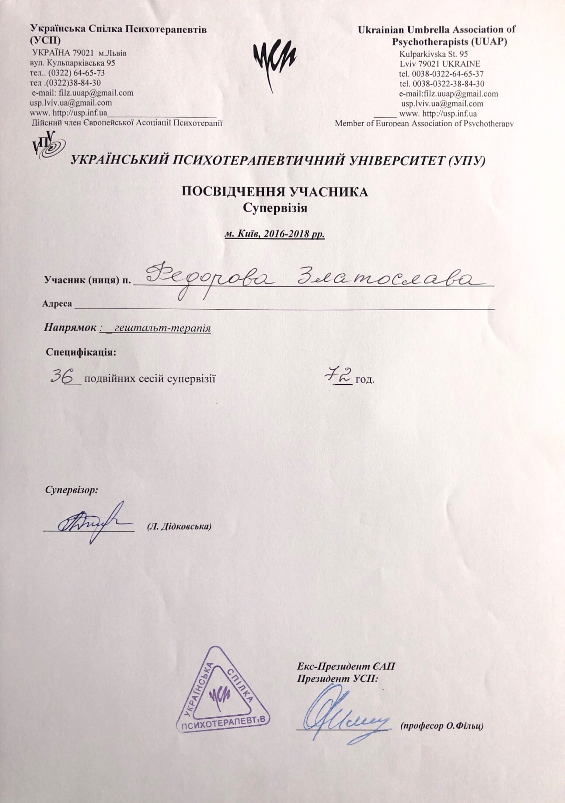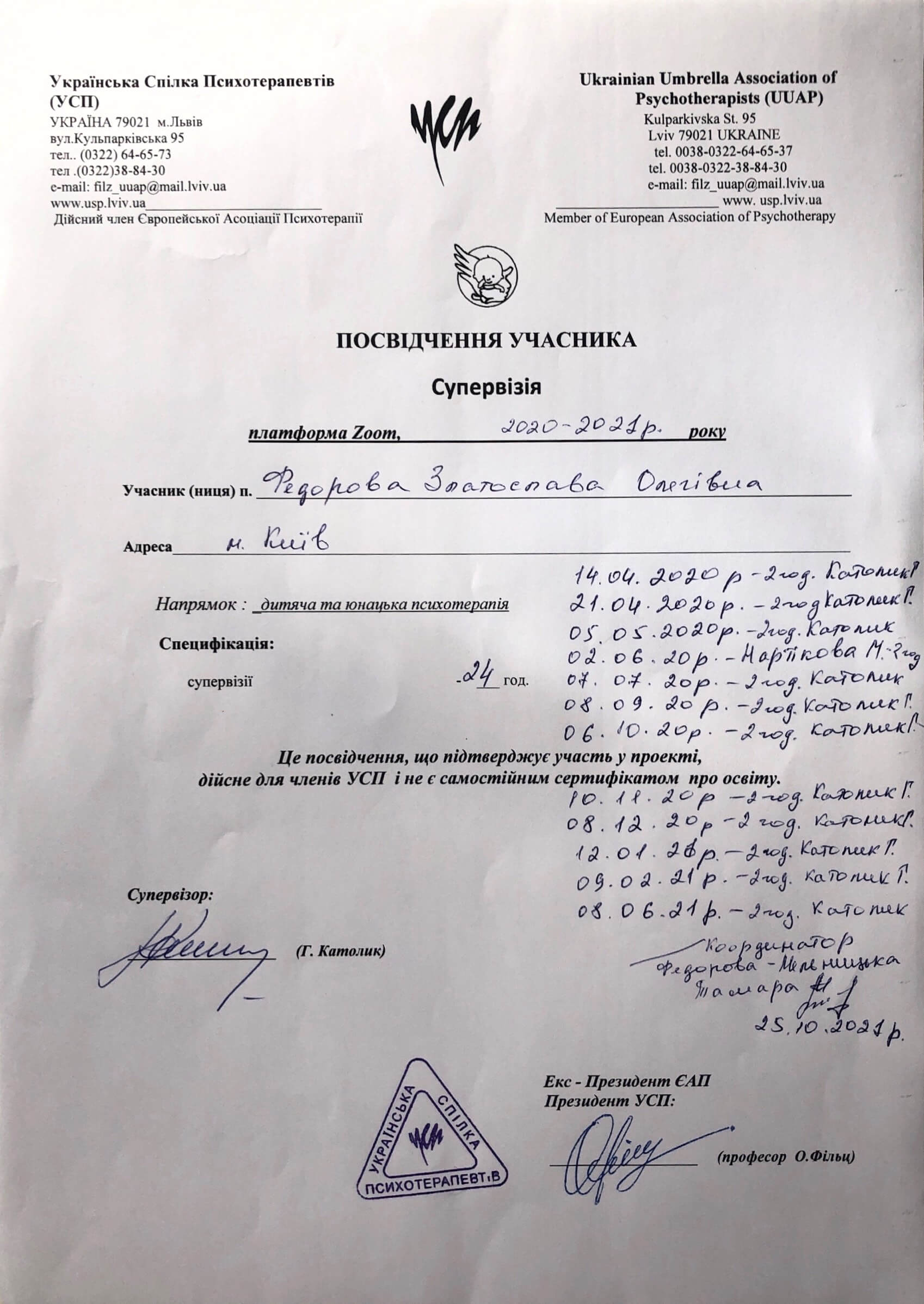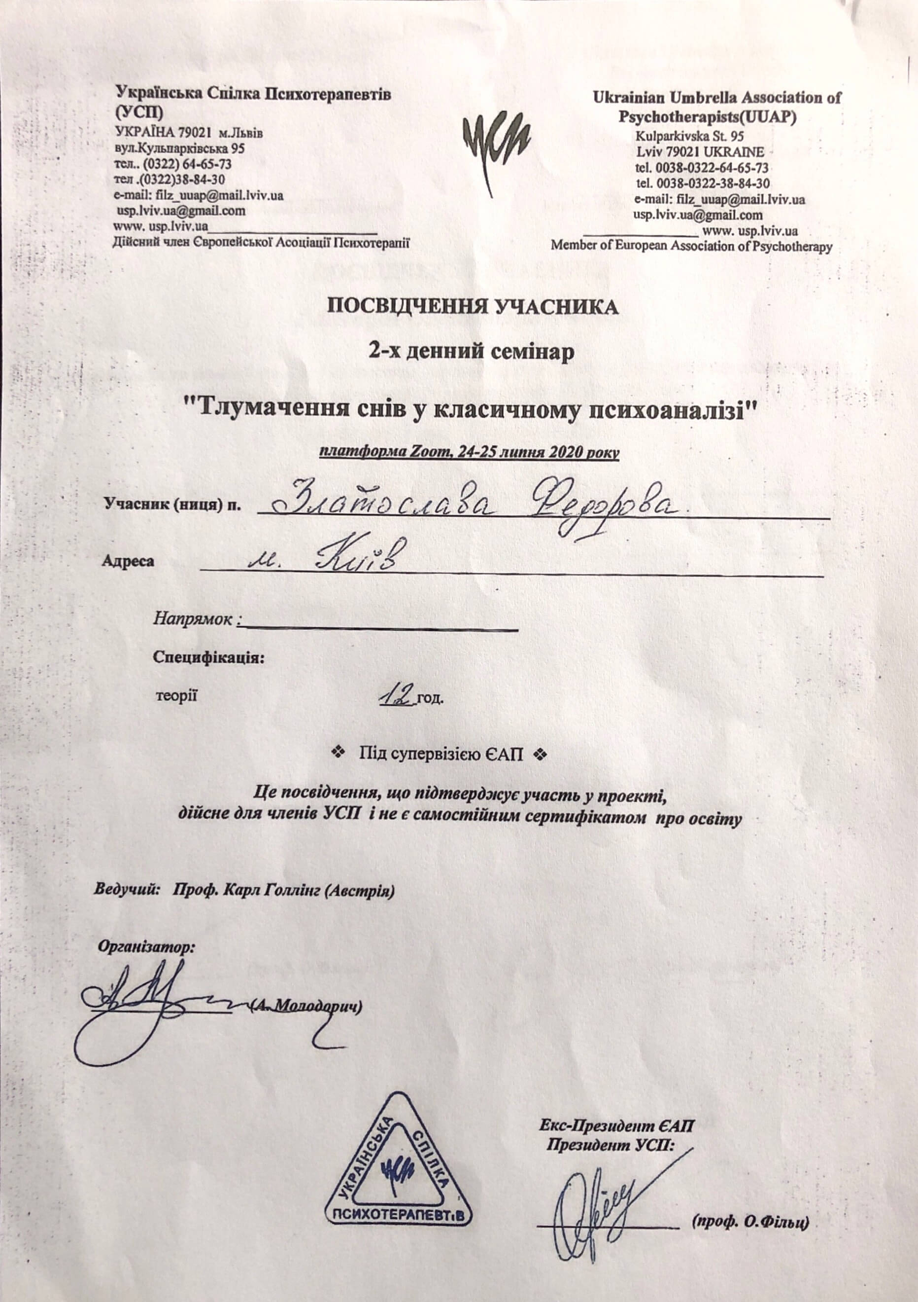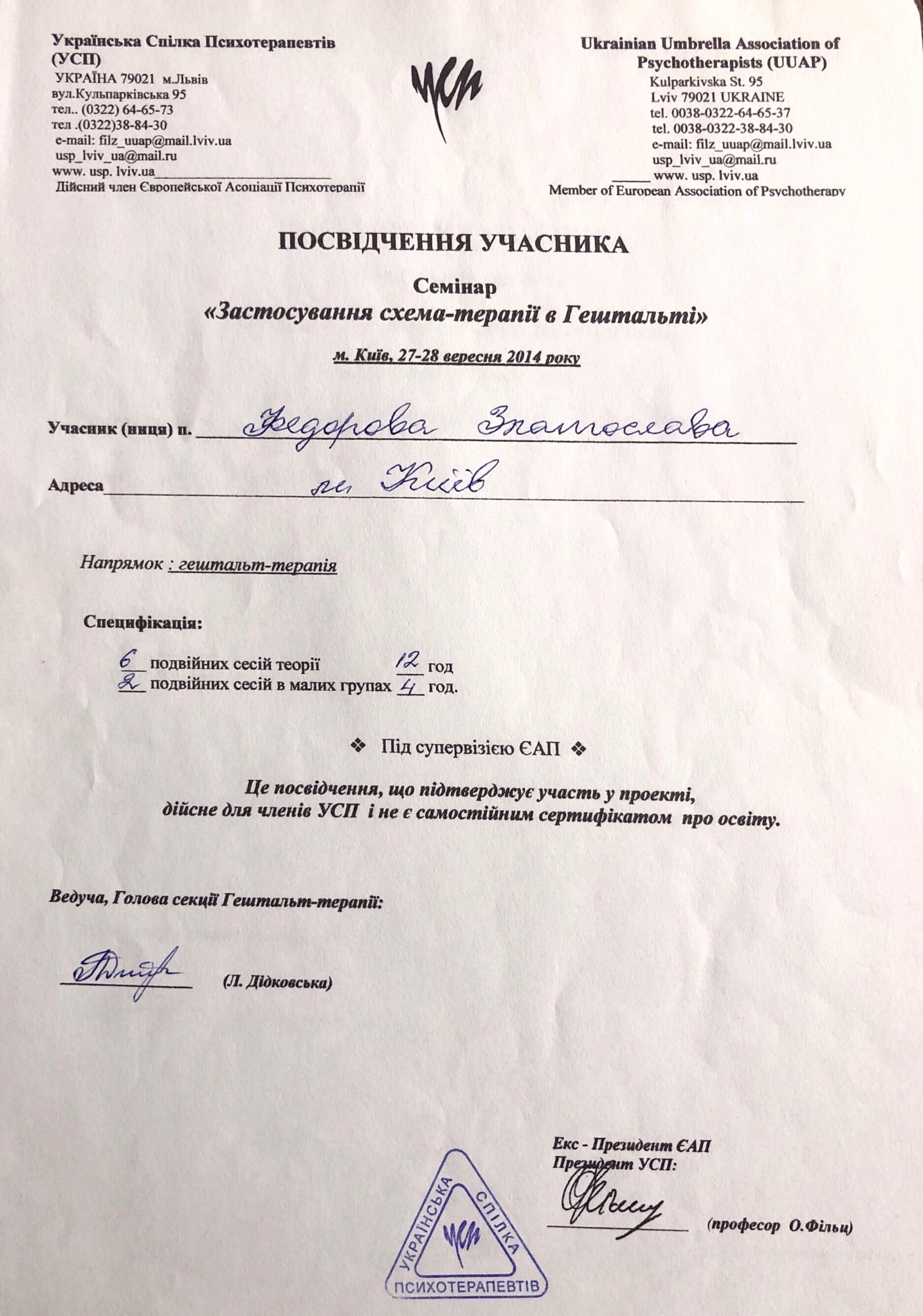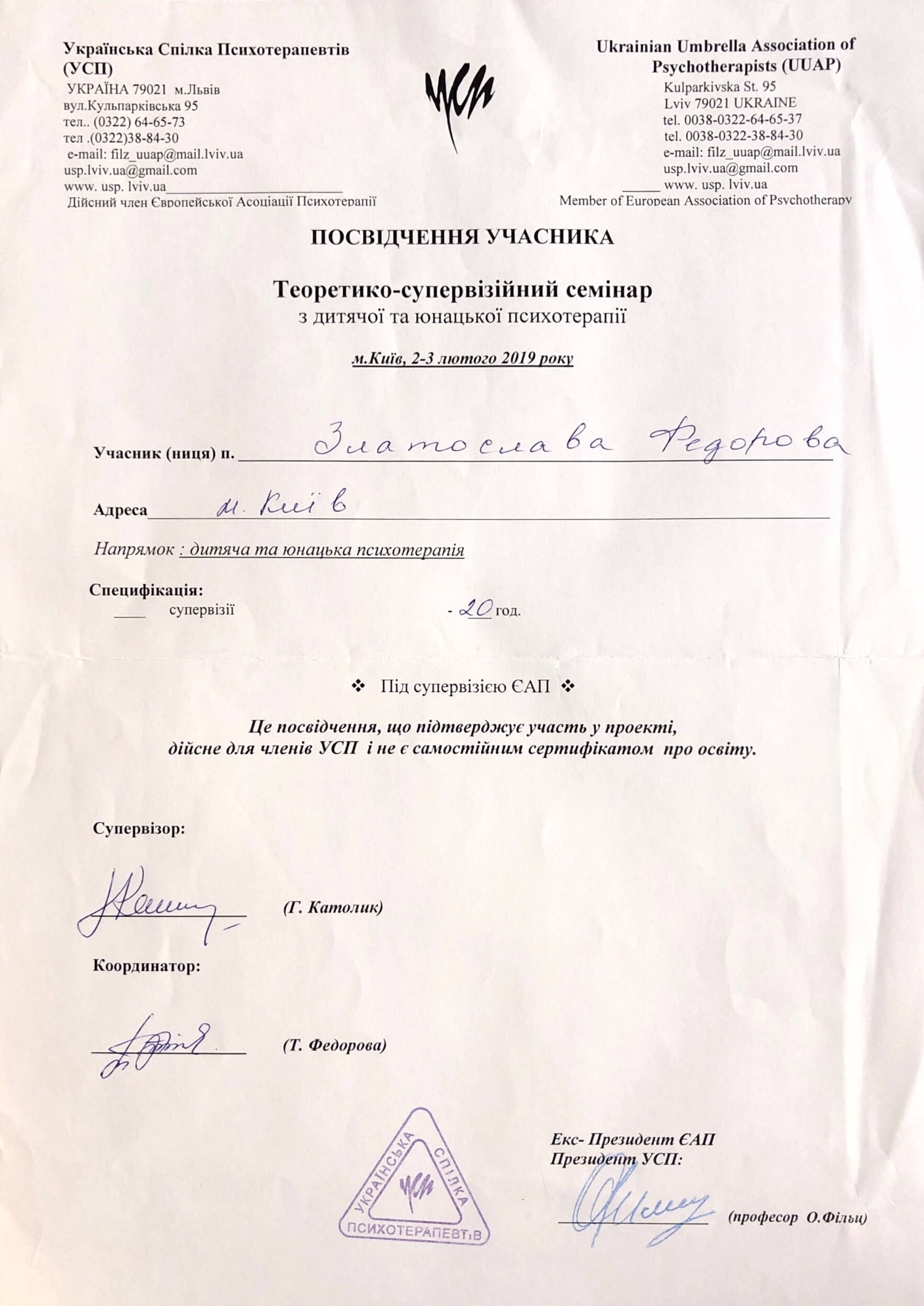 Сертифікат психотерапевта Української спілки психотерапевтів