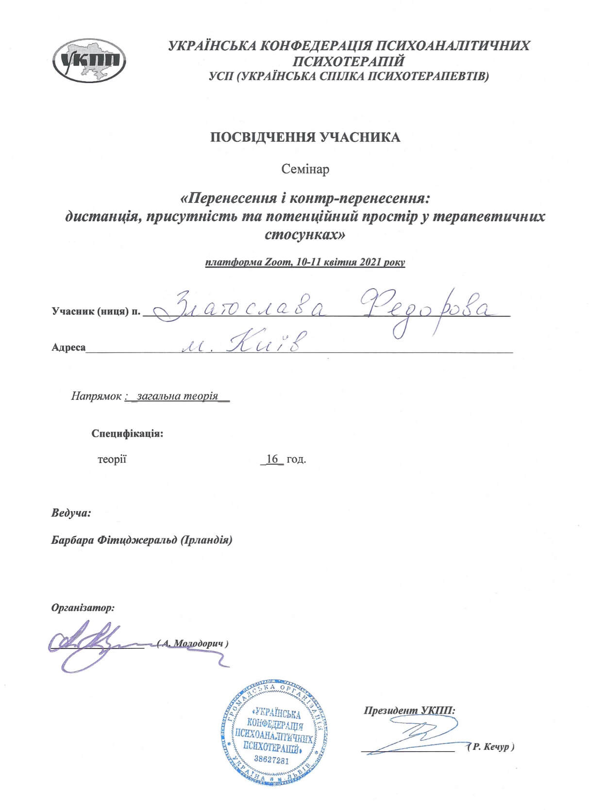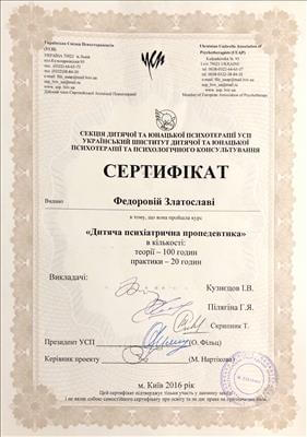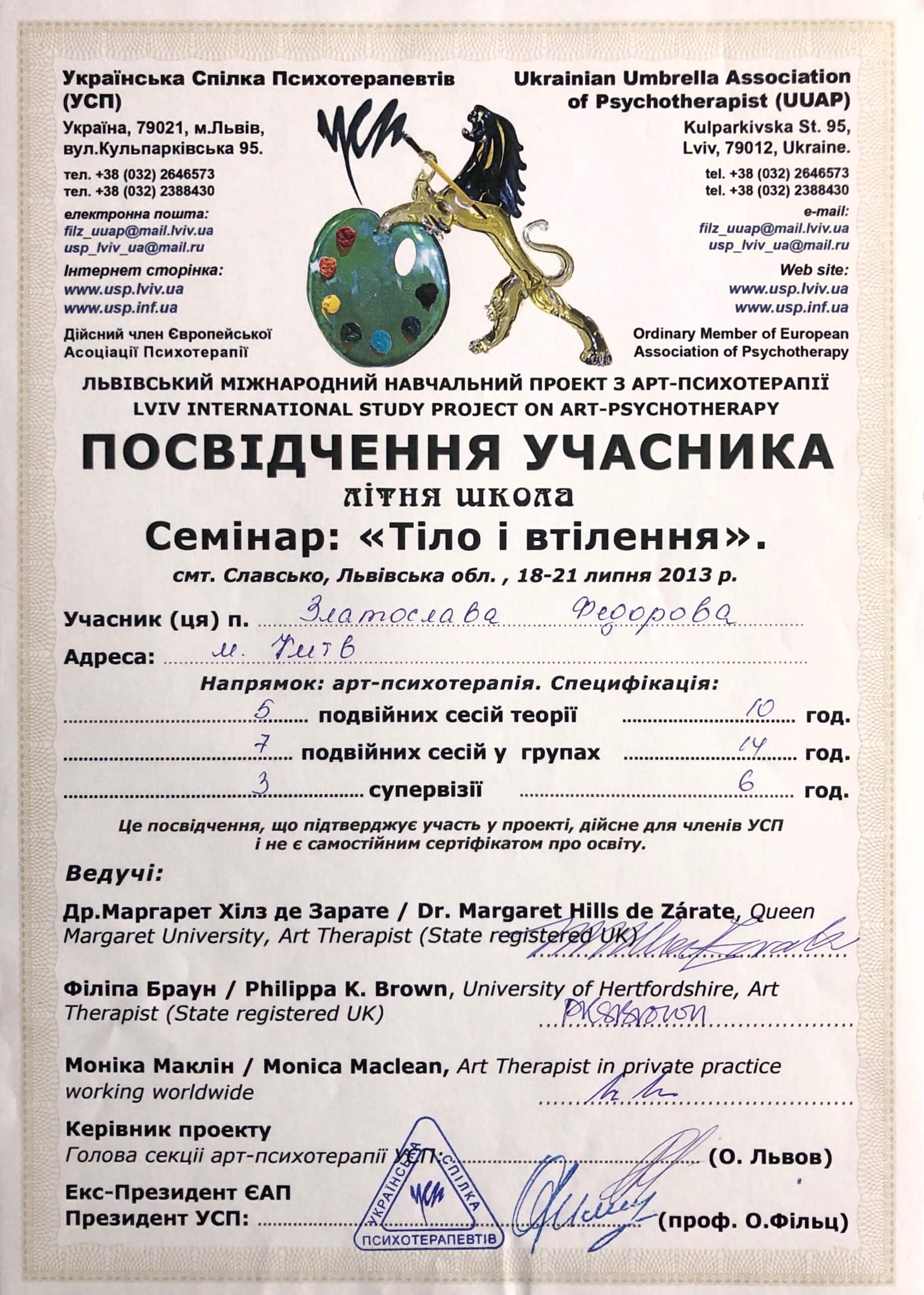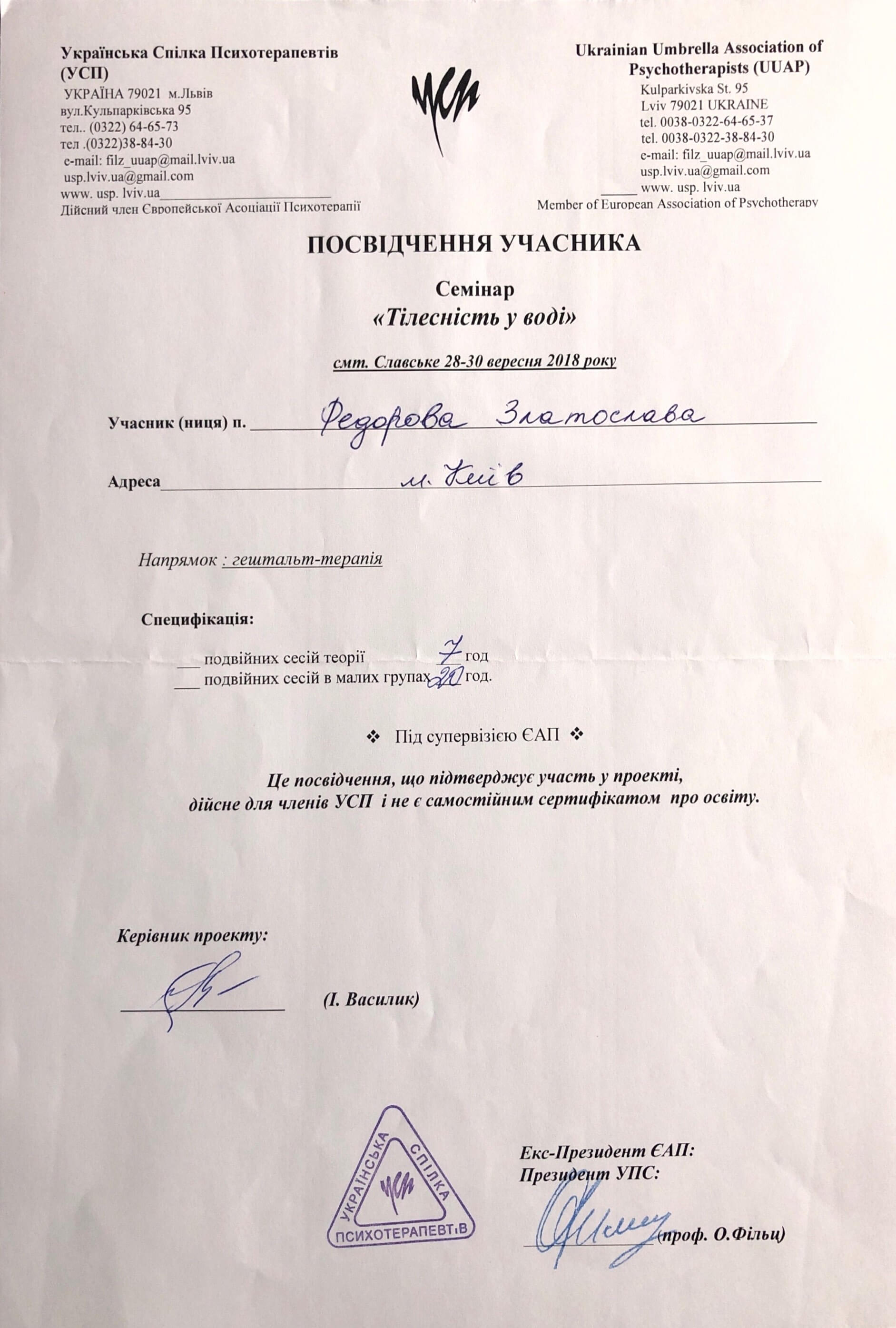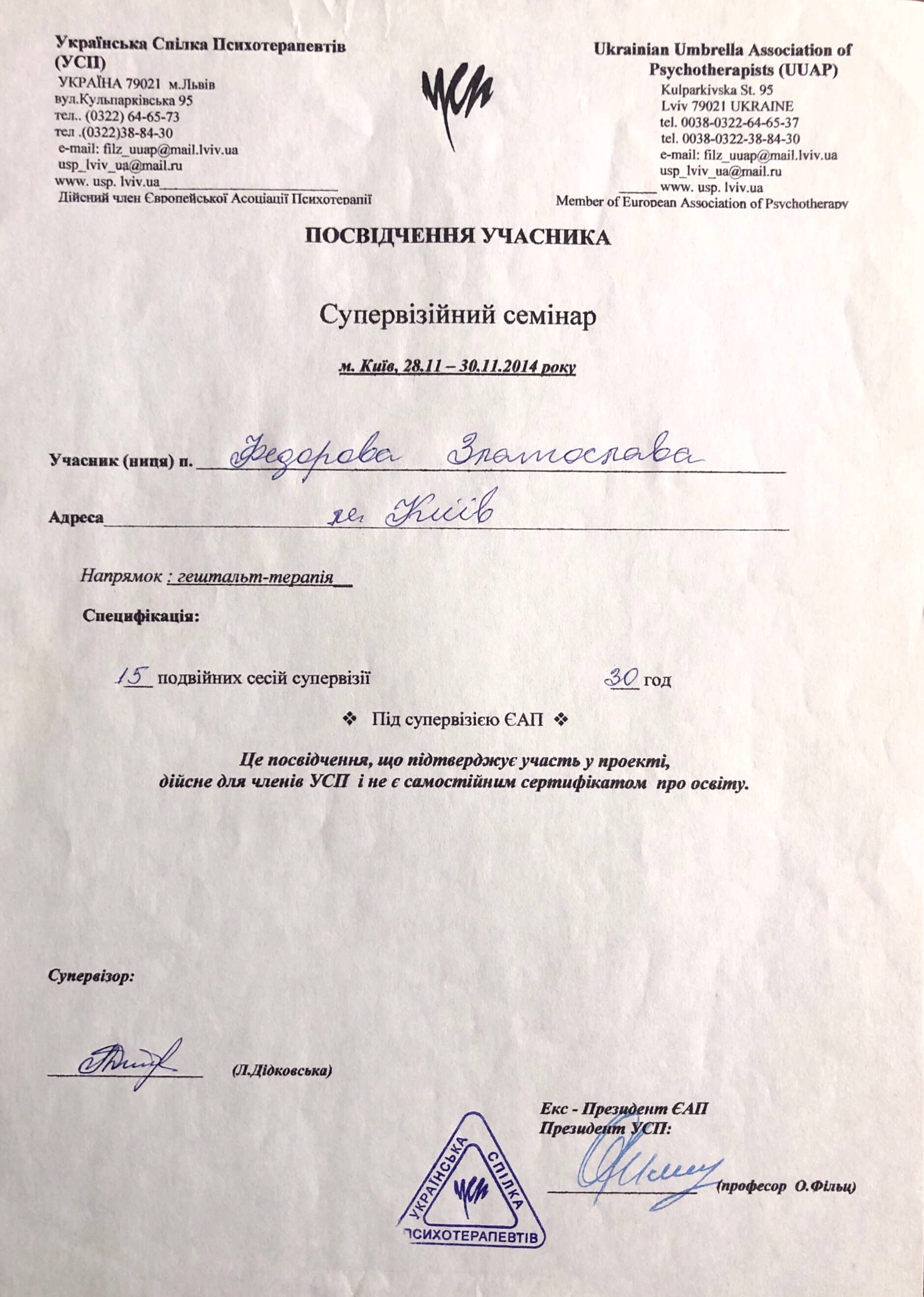 Сертифікат психотерапевта Української спілки психотерапевтів