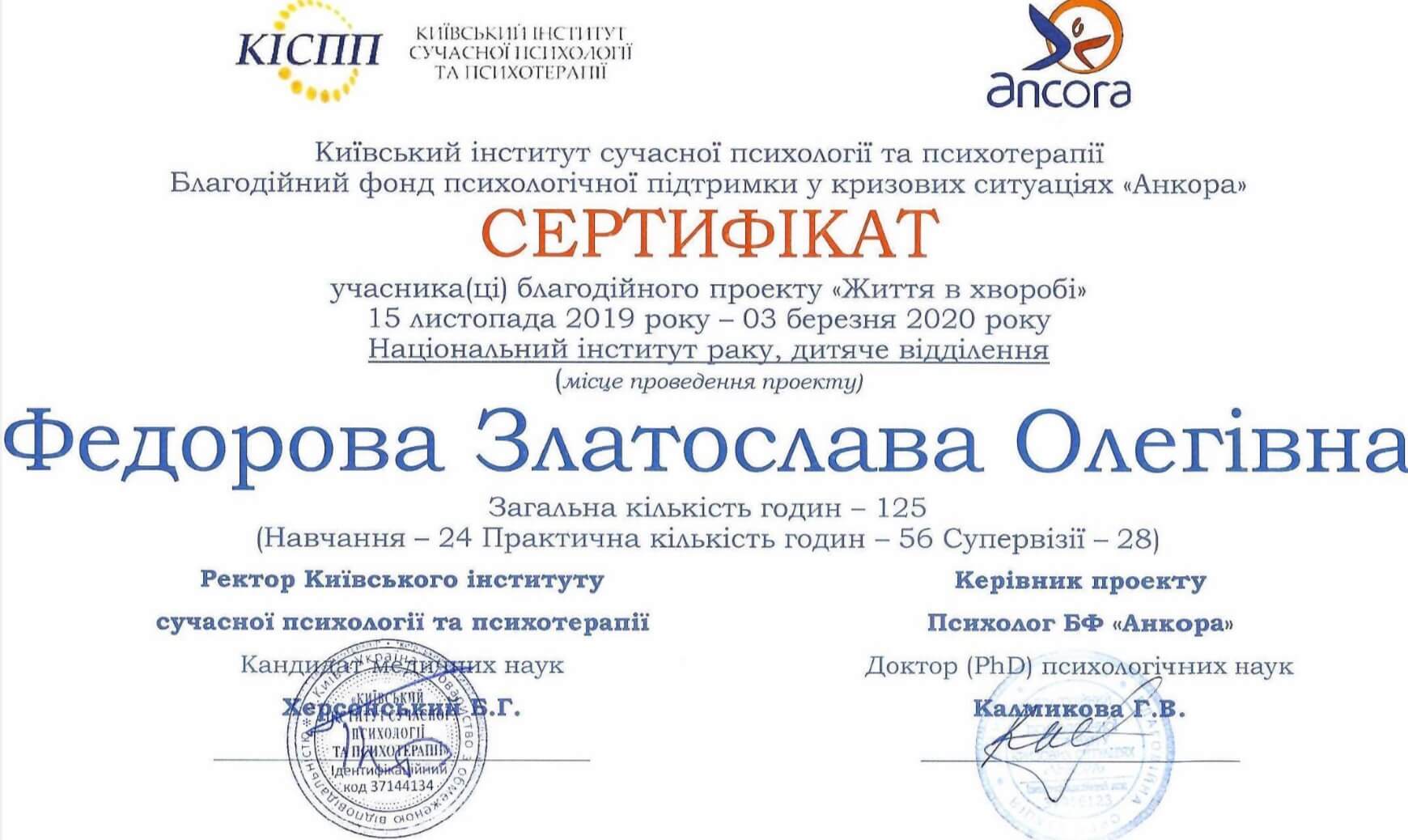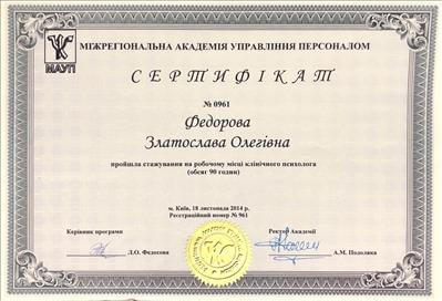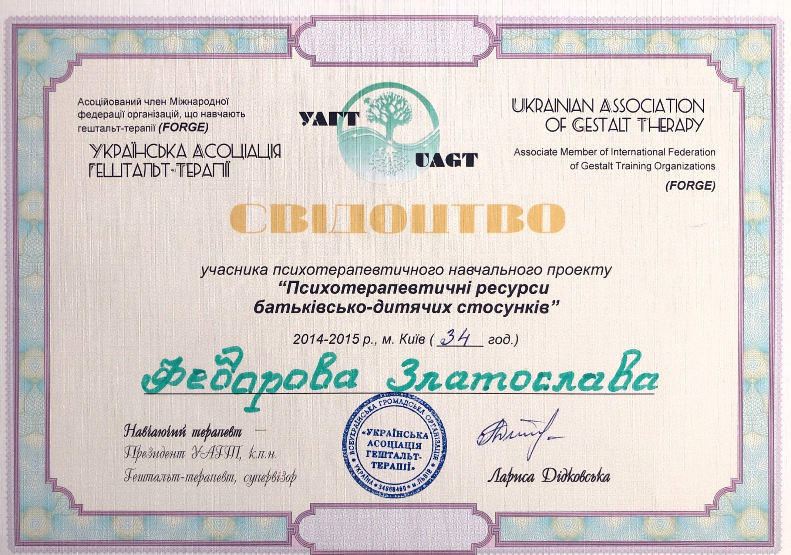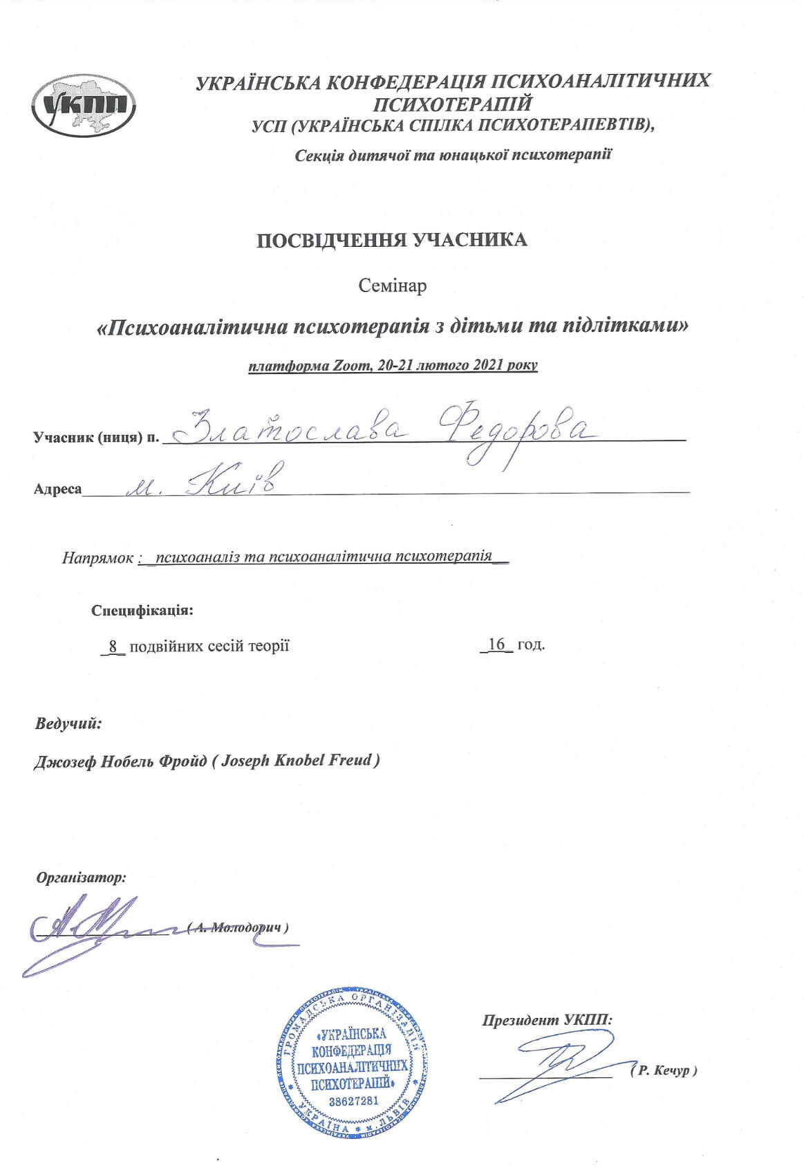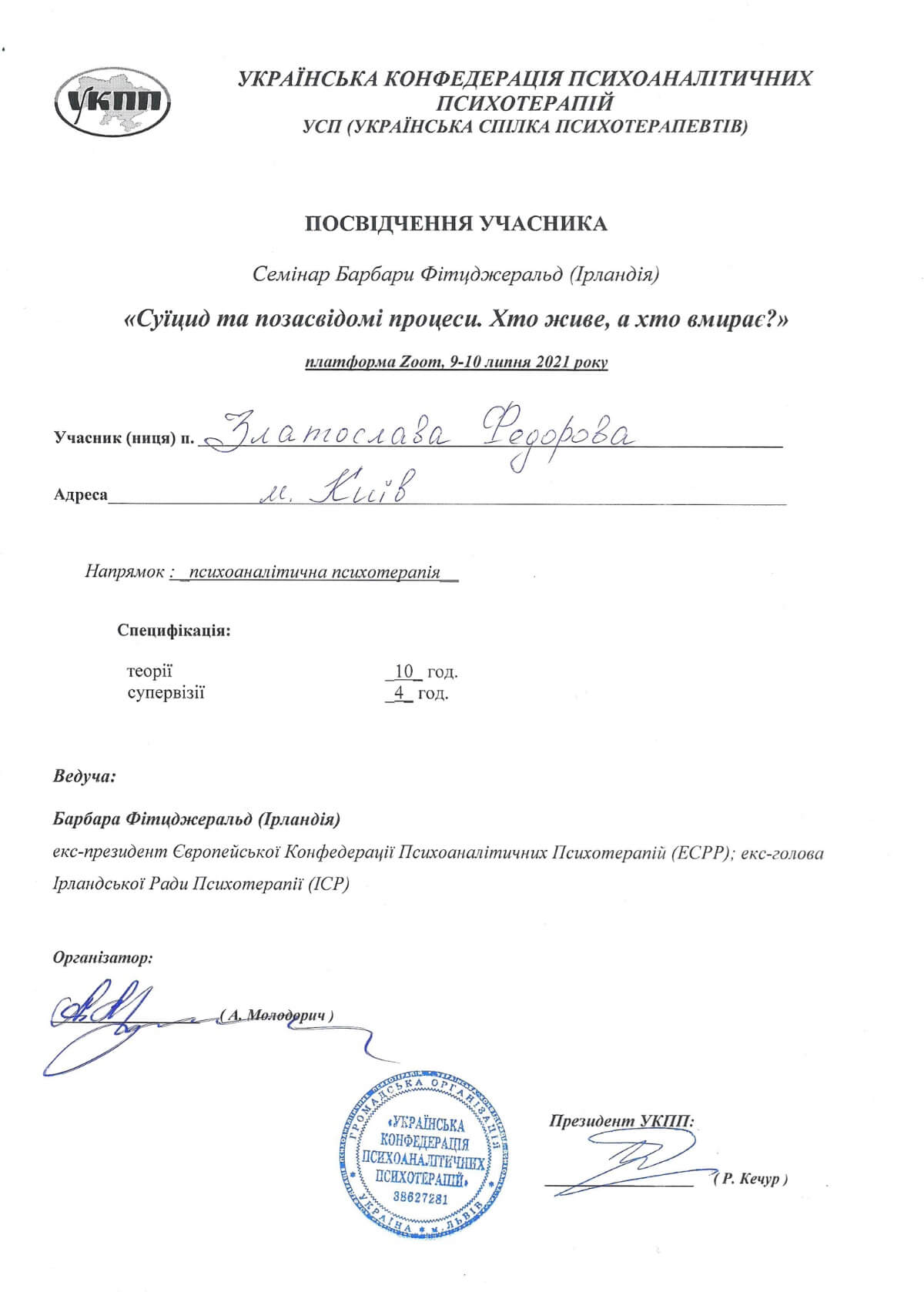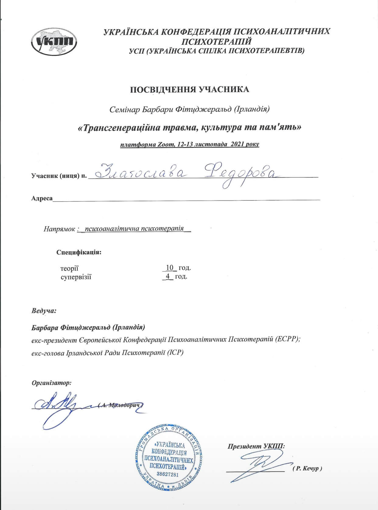 Сертифікат психотерапевта Української спілки психотерапевтів
