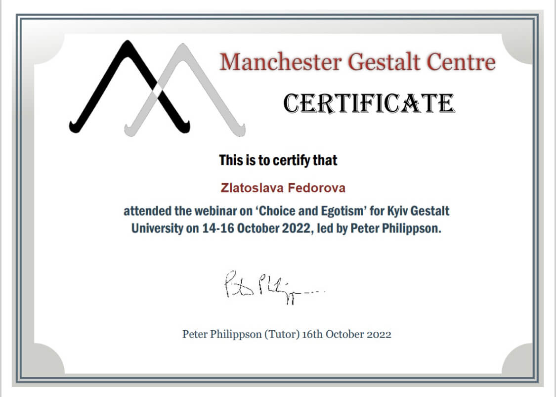 webinar on 'Choice and Egotism' for Kyiv Gestalt University