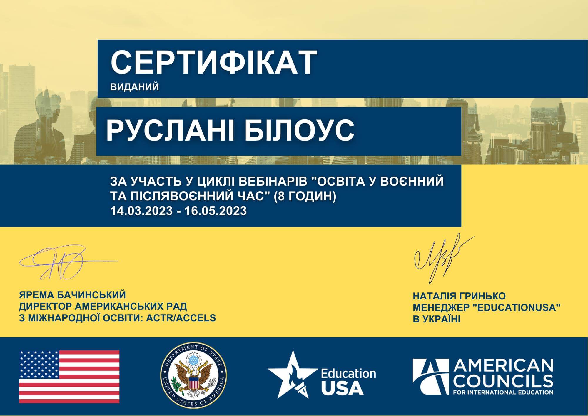 ЦИКЛ ВЕБІНАРІВ "ОСВІТА У ВОЄННИЙ ТА ПІСЛЯВОЄННИЙ ЧАС"