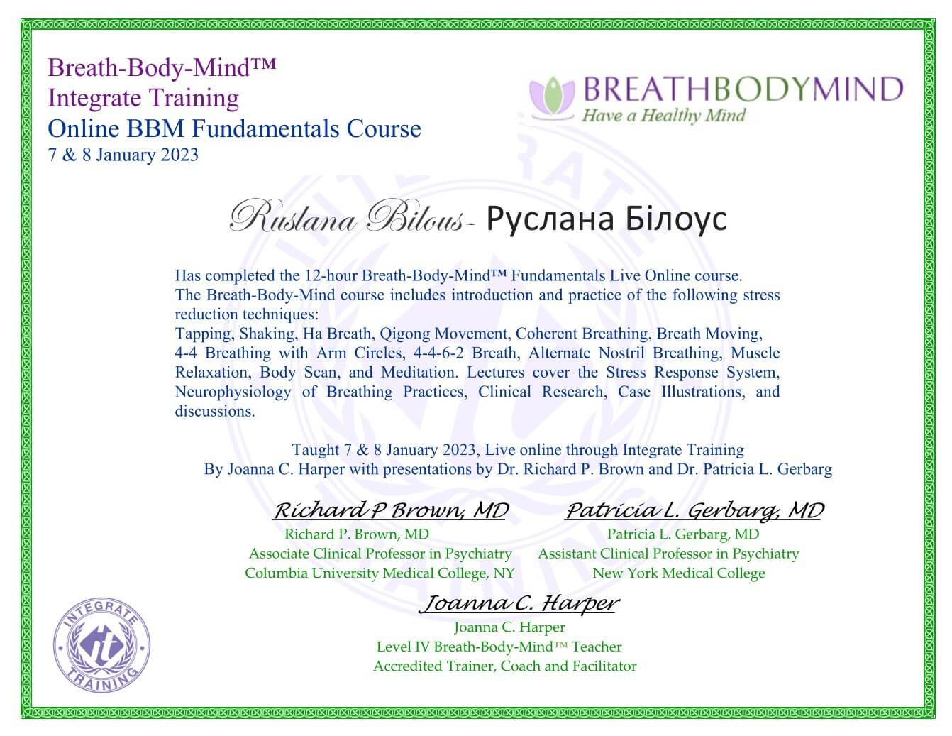 2023 –Breath-Body-Mind™ Fundamentals Live Online course, січень.