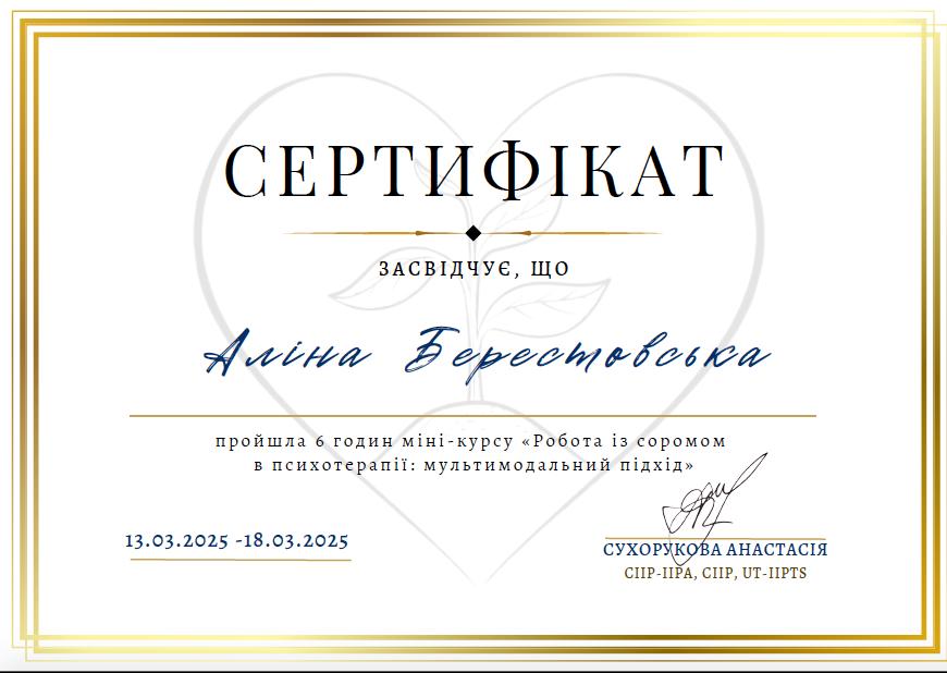Хоча моя основна модальність – транзакційний аналіз, в роботі поєдную багато інших підходів. Особливу увагу приділяю роботі з емоціями та тілесними відчуттями.