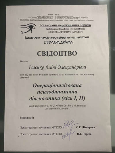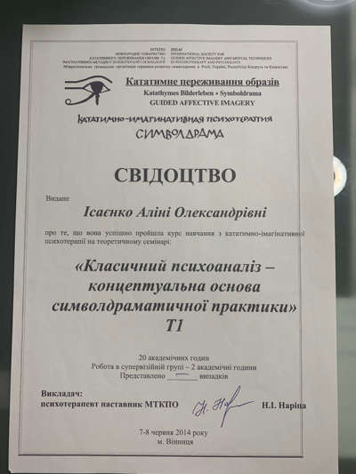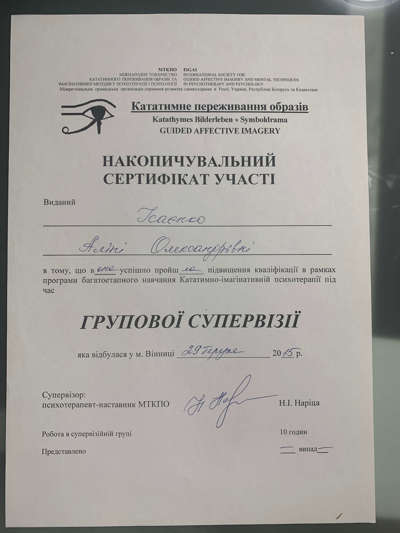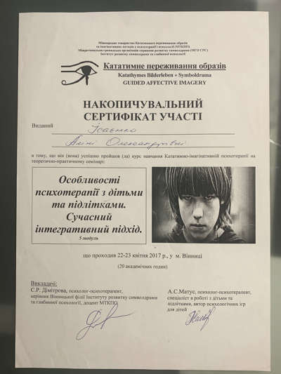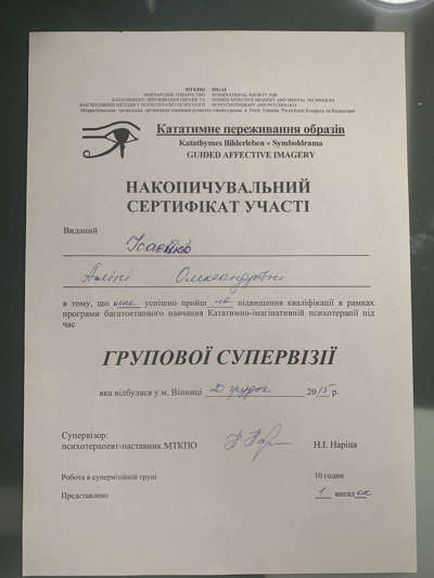 Для мене в психотерапії головне не сертифікат чи диплом, а знання, досвід і результат, адже тільки це може впливати на той чи інший шлях у терапії і результат клієнта.