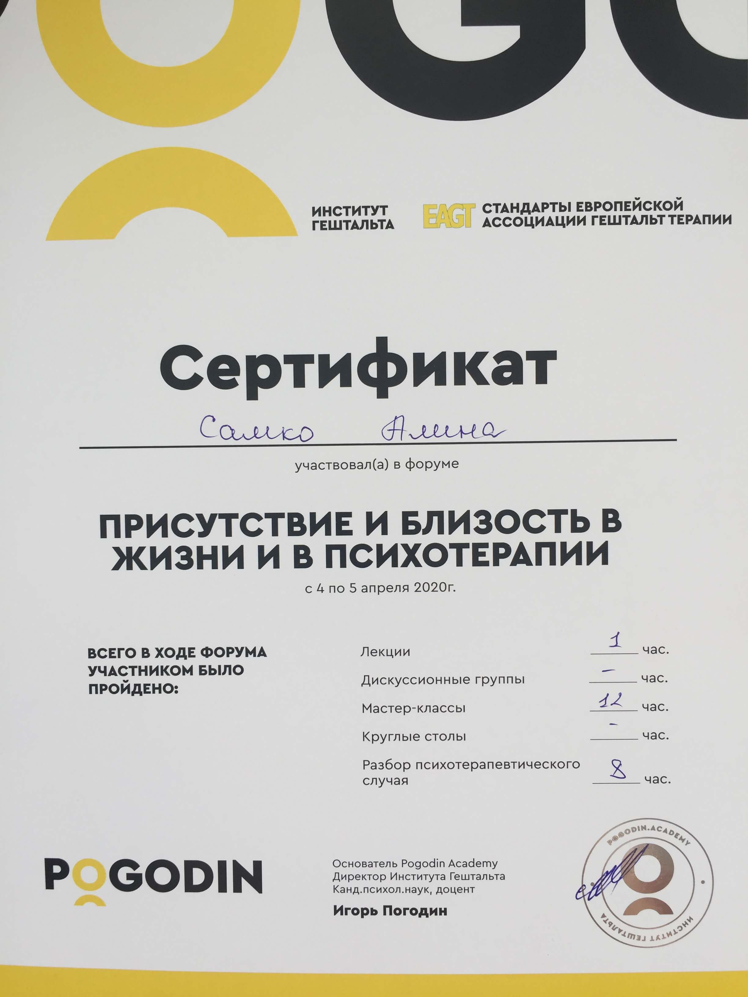 Академія гештальту Погодіна (2018-2021)