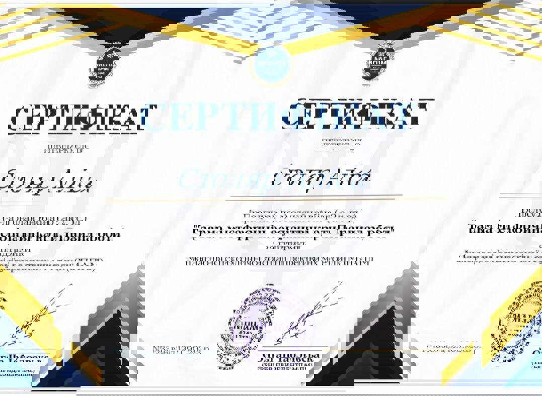 Проходження навчання в м. Київ “Професійна підготовка експертів для психофізіологічного виявлення обману за допомогою поліграфу”, організовані Відділом з правоохоронних питань Посольства США в Україні U.S. Embassy Kyiv Ukraine та бюро з міжнародної боротьби з наркотиками та правоохоронної діяльності держдепартаменту США U.S. Department of State: Bureau of Intl Narcotics & Law Enforcement (INL)Співорганізатором навчань була Оксана Стівенсон, віцепрезидент компанії AXCITON Inc. (США).