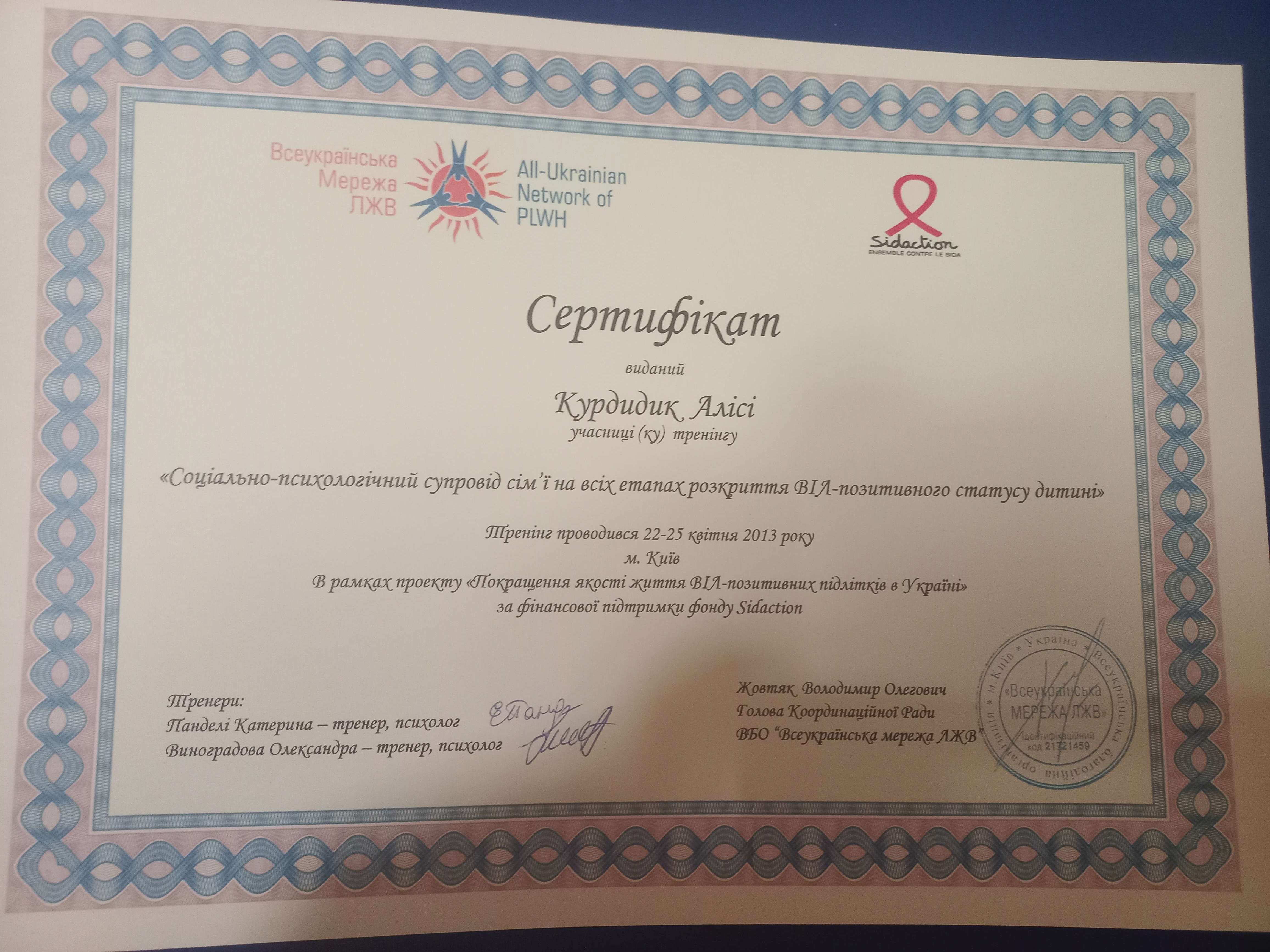 Участь в тренінгу на тему «Соціально-психологічний супровід сімї на всіх етапах розкриття ВІЛ-позитивного статусу дитині» м. Київ