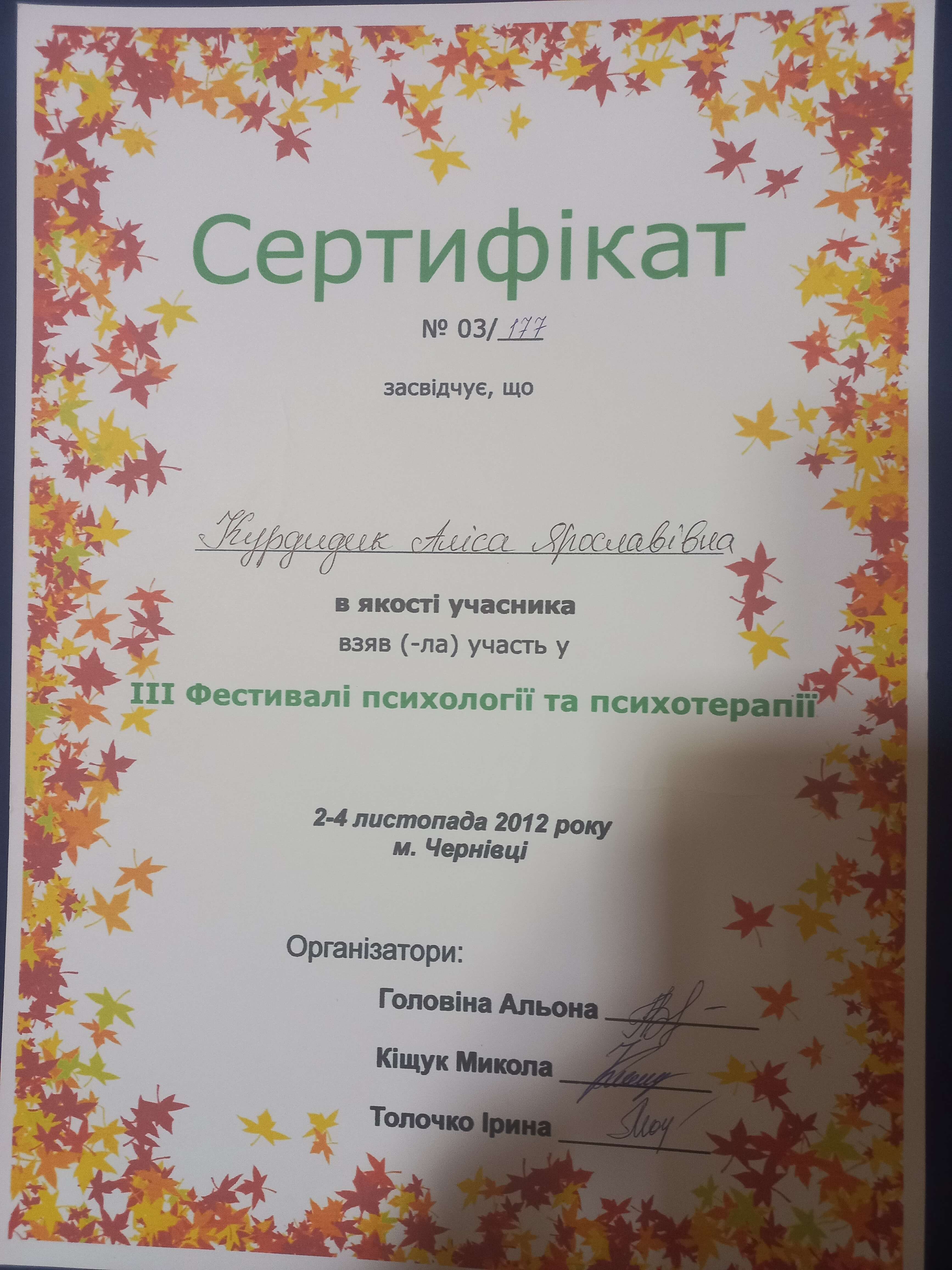 Участь в «ІІІ Фестивалі психології» міжнародного рівня