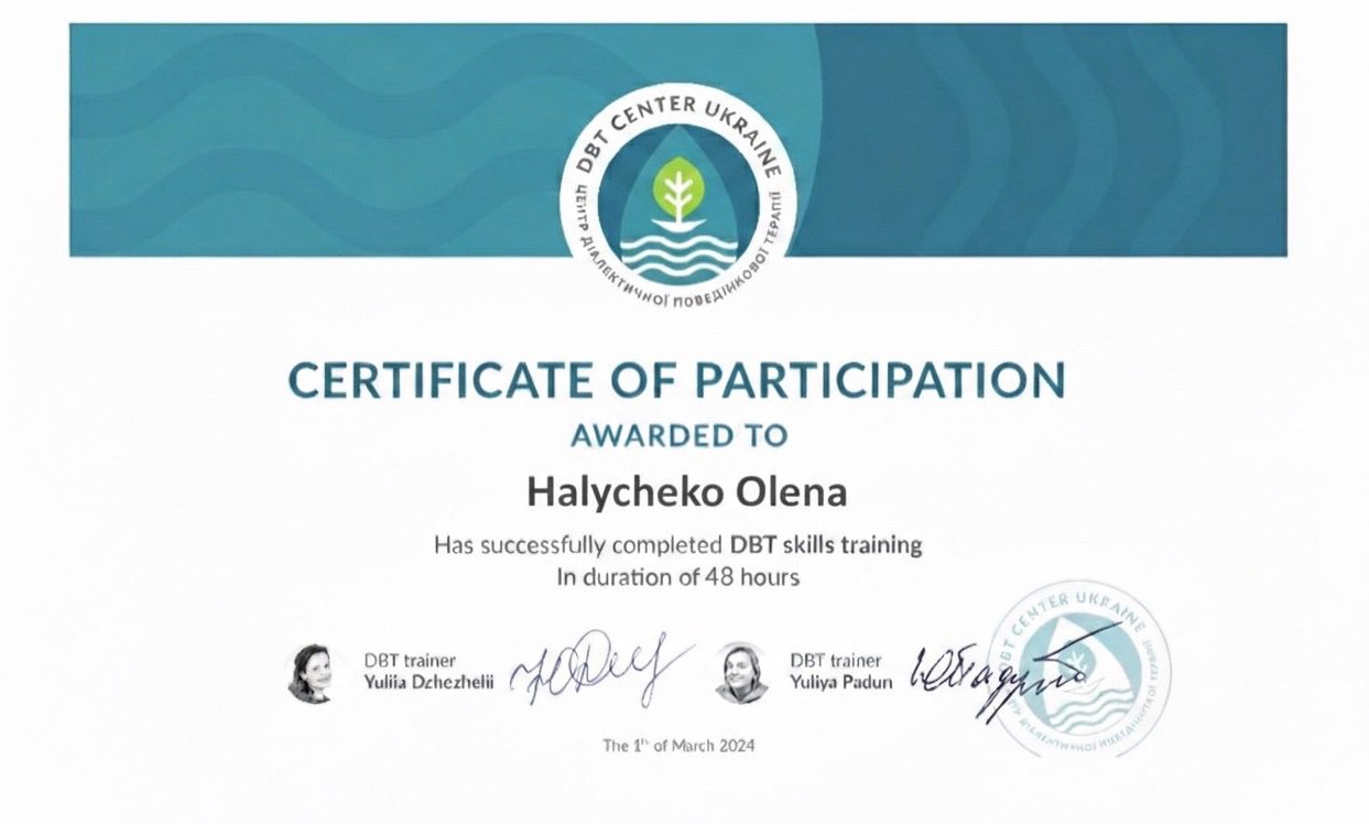 Я магістр психології, клінічний психолог, психотерапевт, навчаюсь на третьому ступені (супервізор).