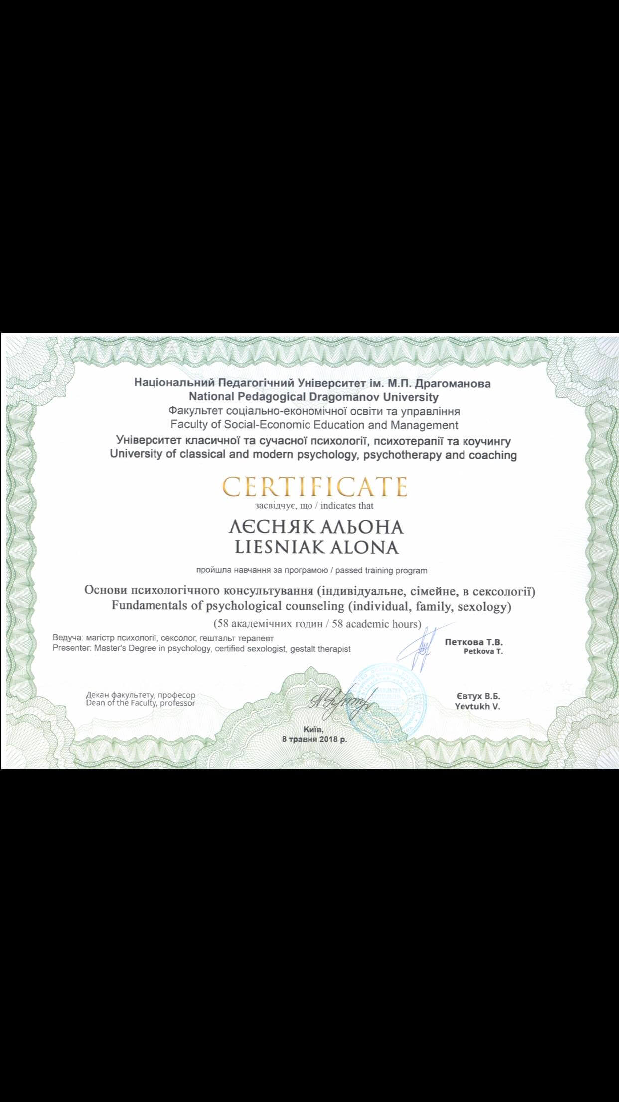 Індивідуальна психотерапія. Статеве та сексуальне просвітництво. Освітня програма. Сімейна терапія. Робота з дисгармонією у парі. Аналітична психологія, Арт-терапія, Сексологія.