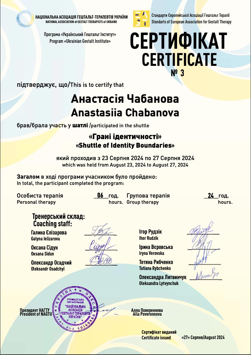 Учасниця програми другого ступеня. Національна Асоціація гештальт-терапевтів України (НАГТУ), 3 рік навчання