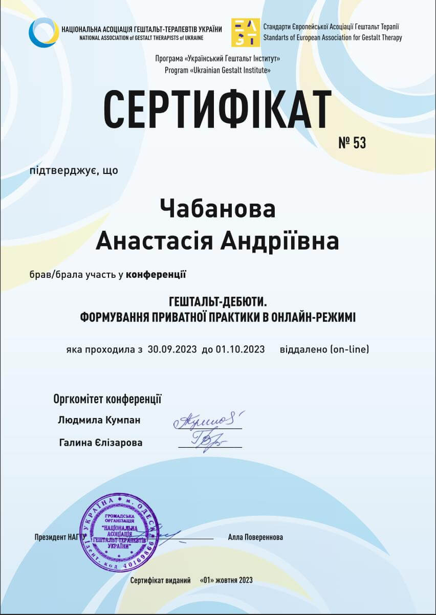 НАЦІОНАЛЬНА АСОЦІАЦІЯ ГЕШТАЛЬТ-ТЕРАПЕВТІВ УКРАЇНИ