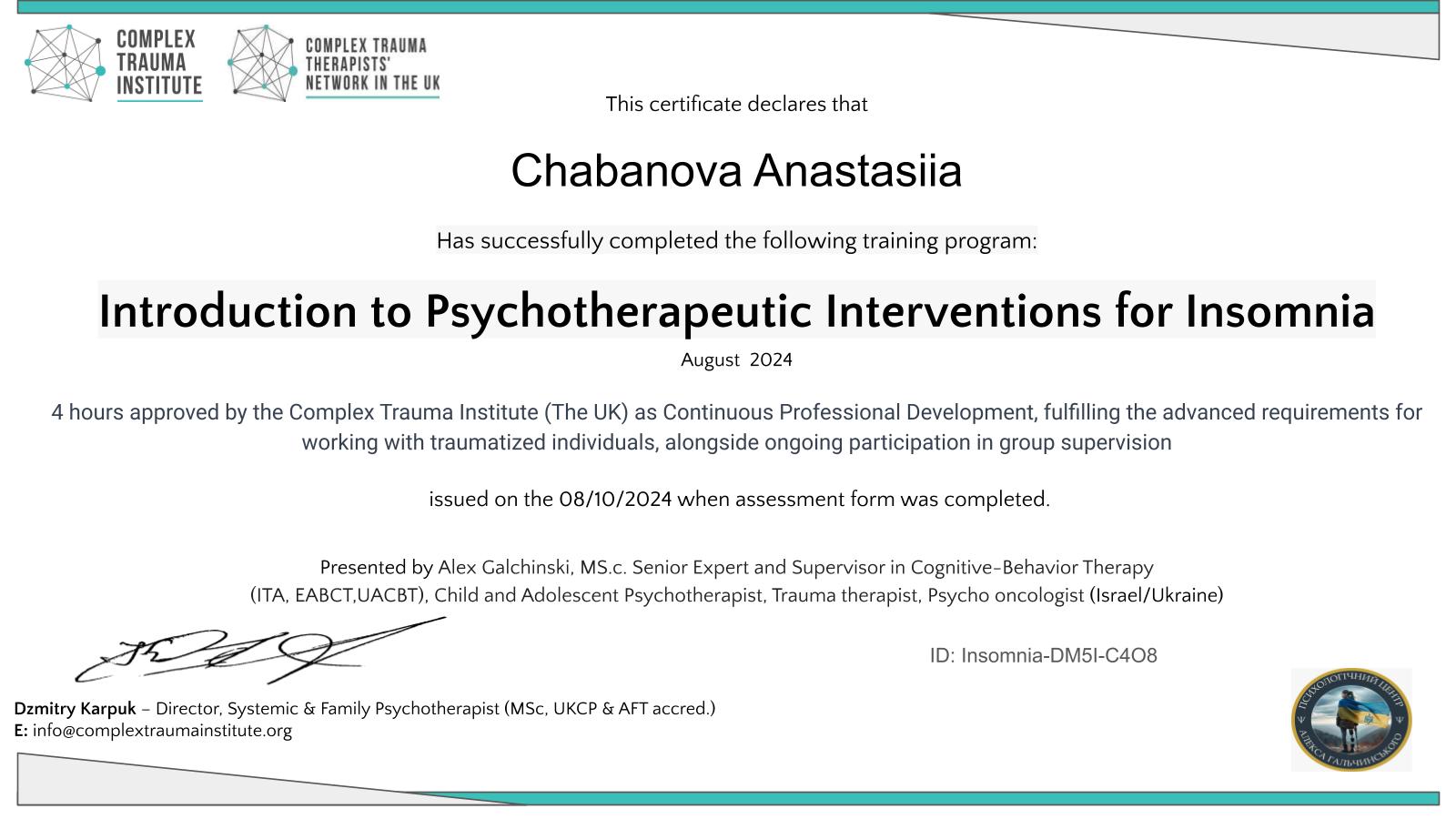 Інтервенції при роботі з інсомнією, Complex Trauma Institute, 2024 рік