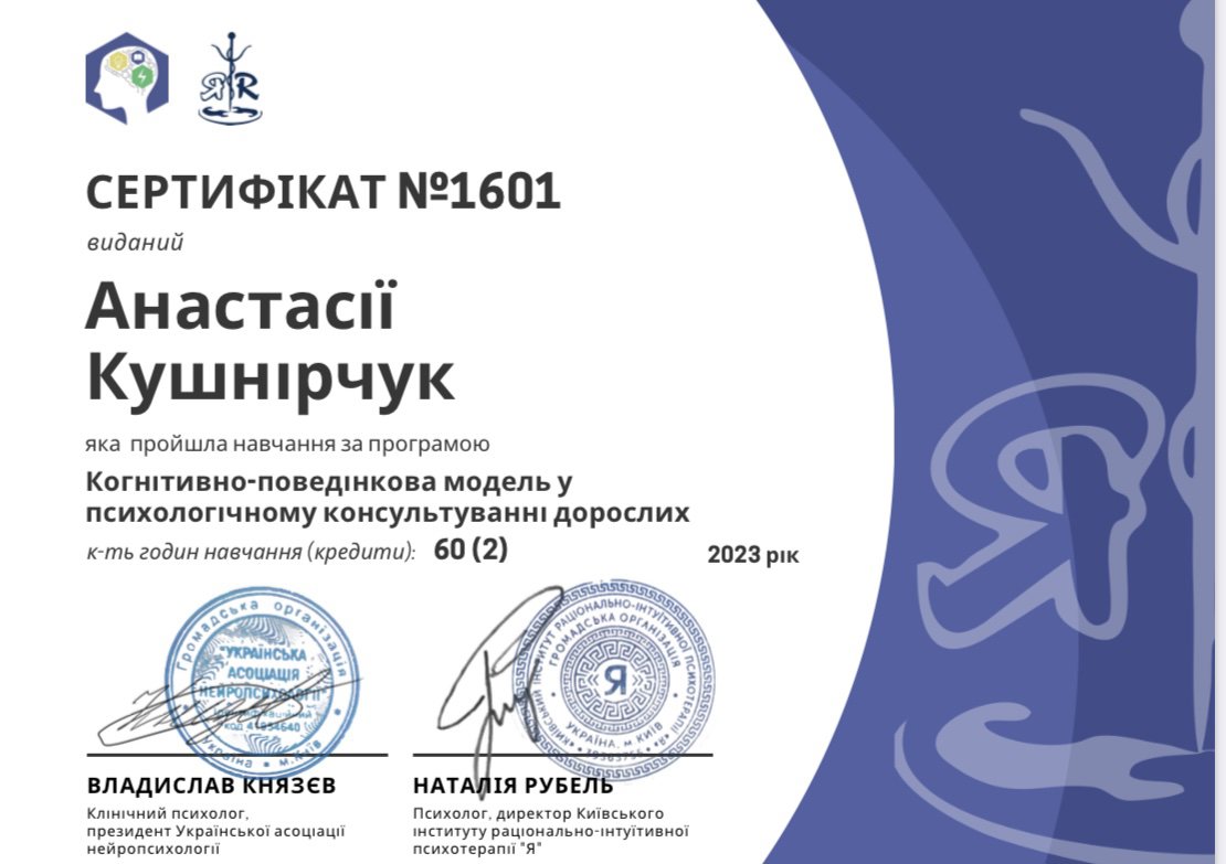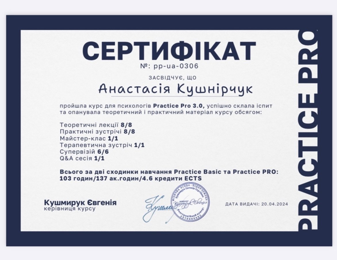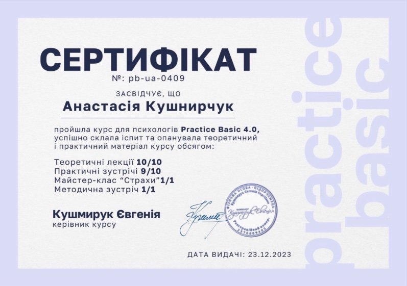 Дуже полюбляю консультувати в методі інтегративної психотерапії, бо бачу найбільший ефект саме тоді, коли поєднуються декілька методів - як КПТ та гештальт, у яких я практикую. КПТ-терапія - це про структуру, поведінкові та когнітивні зміни, які допомагають у боротьбі з депресивними чи тривожними станами. Гештальт-терапія ж допомагає більше зануритись в емоційний стан клієнта, його повсякденний фон, а також дозволяє розкритися прийняттю себе.