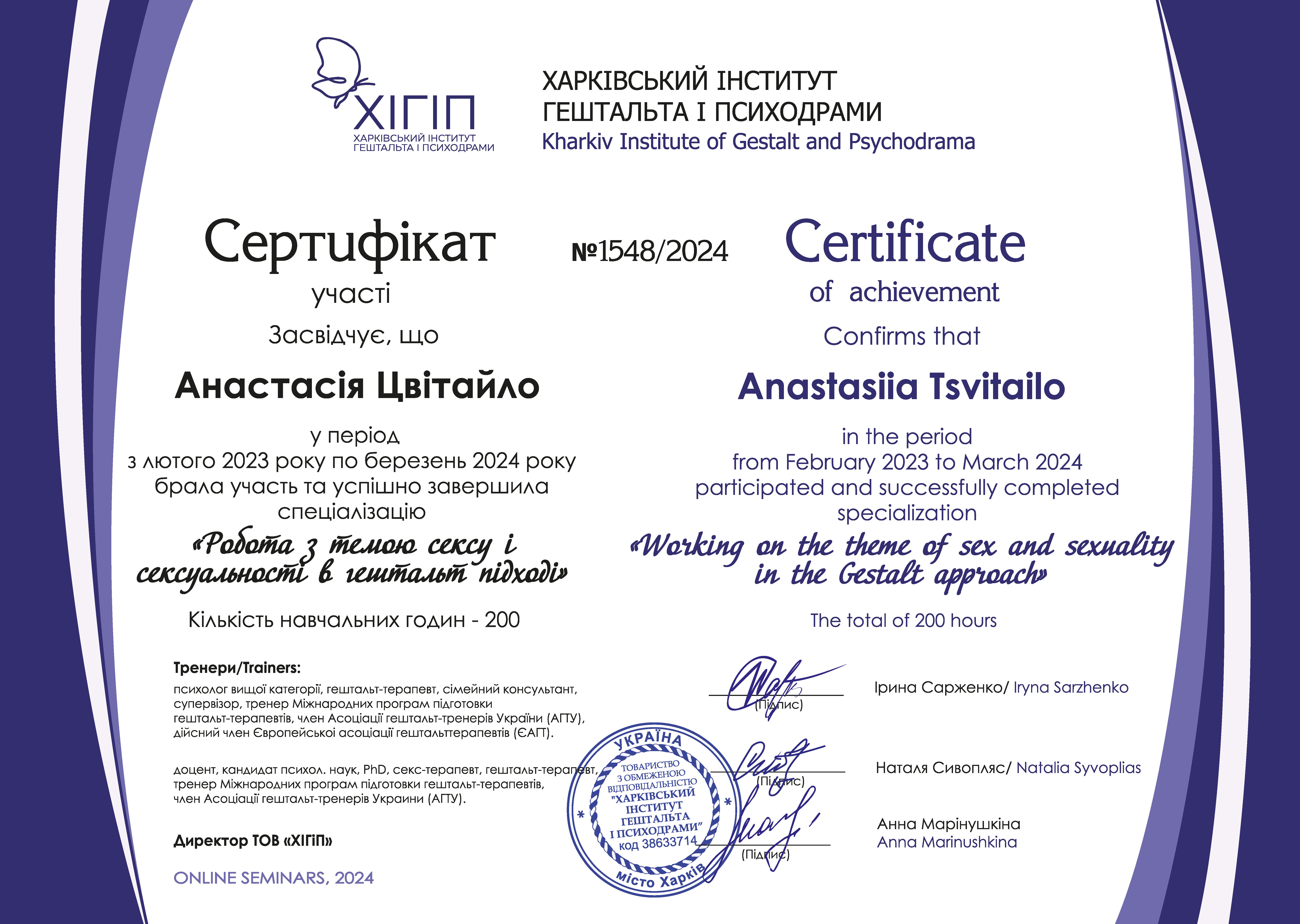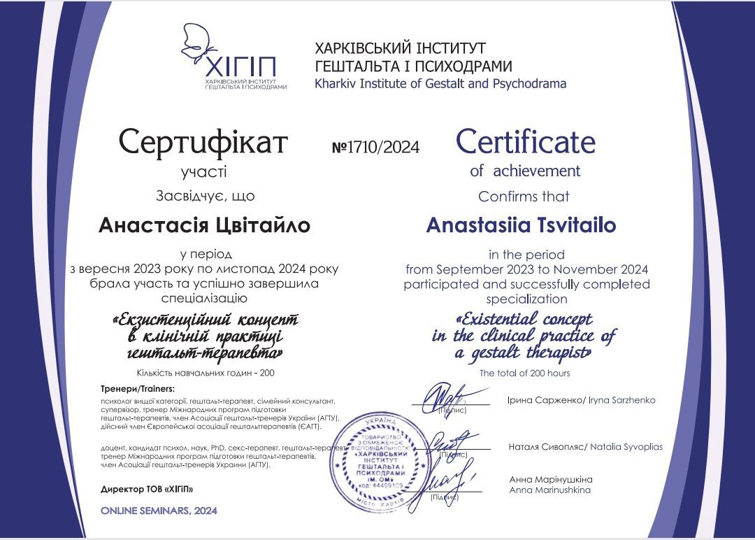 ХІГІП - 1 ступінь підготовки гештальт-терапевтів (завершено)