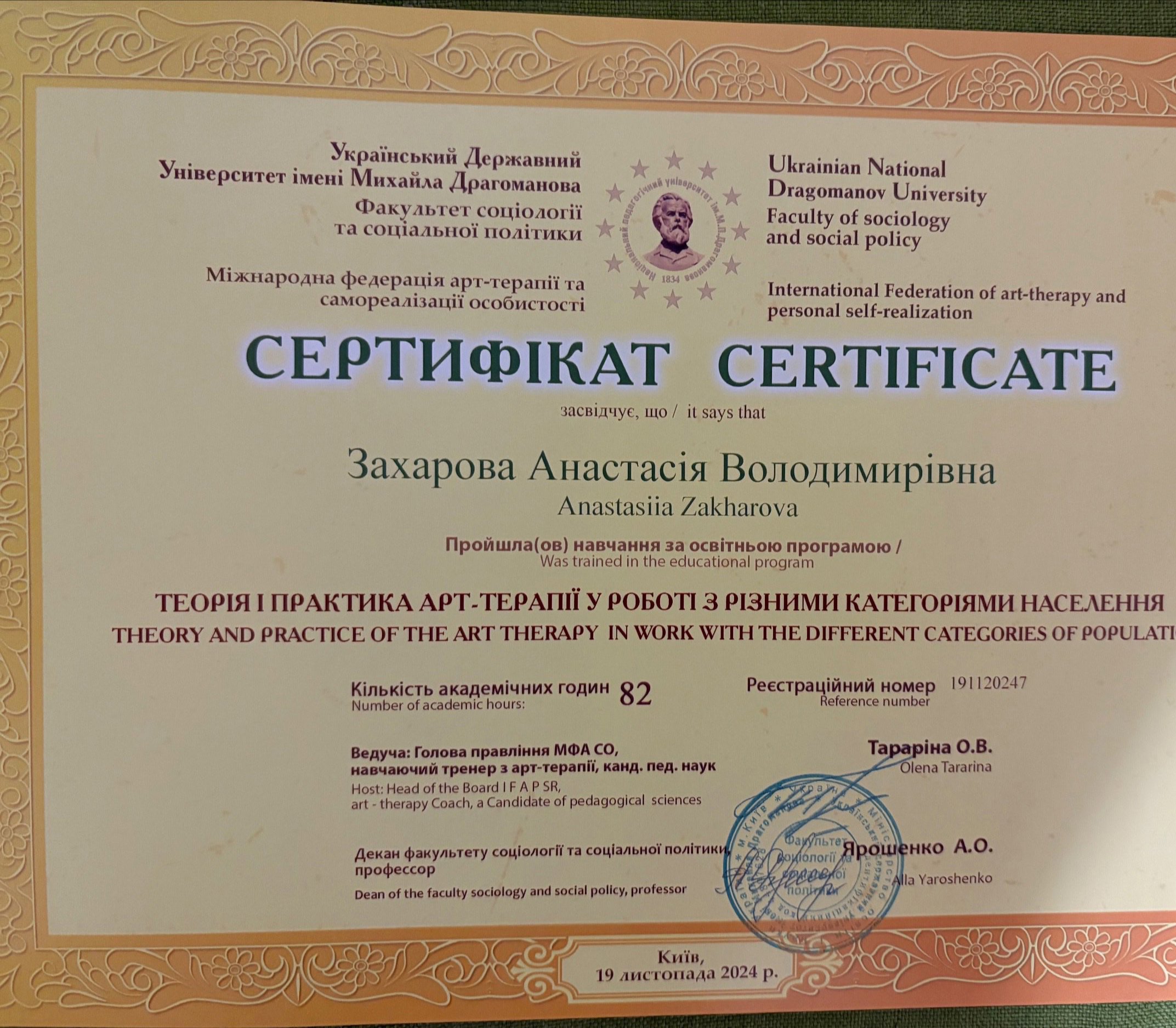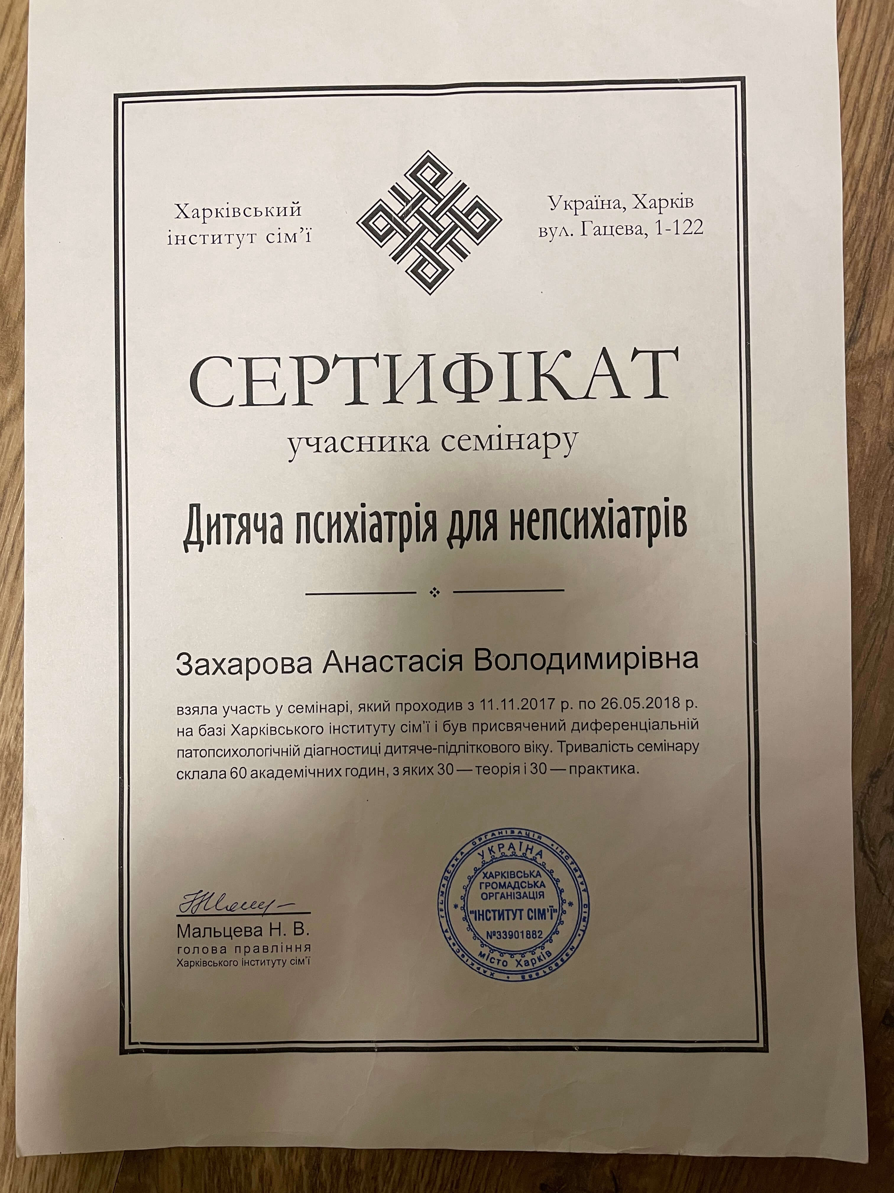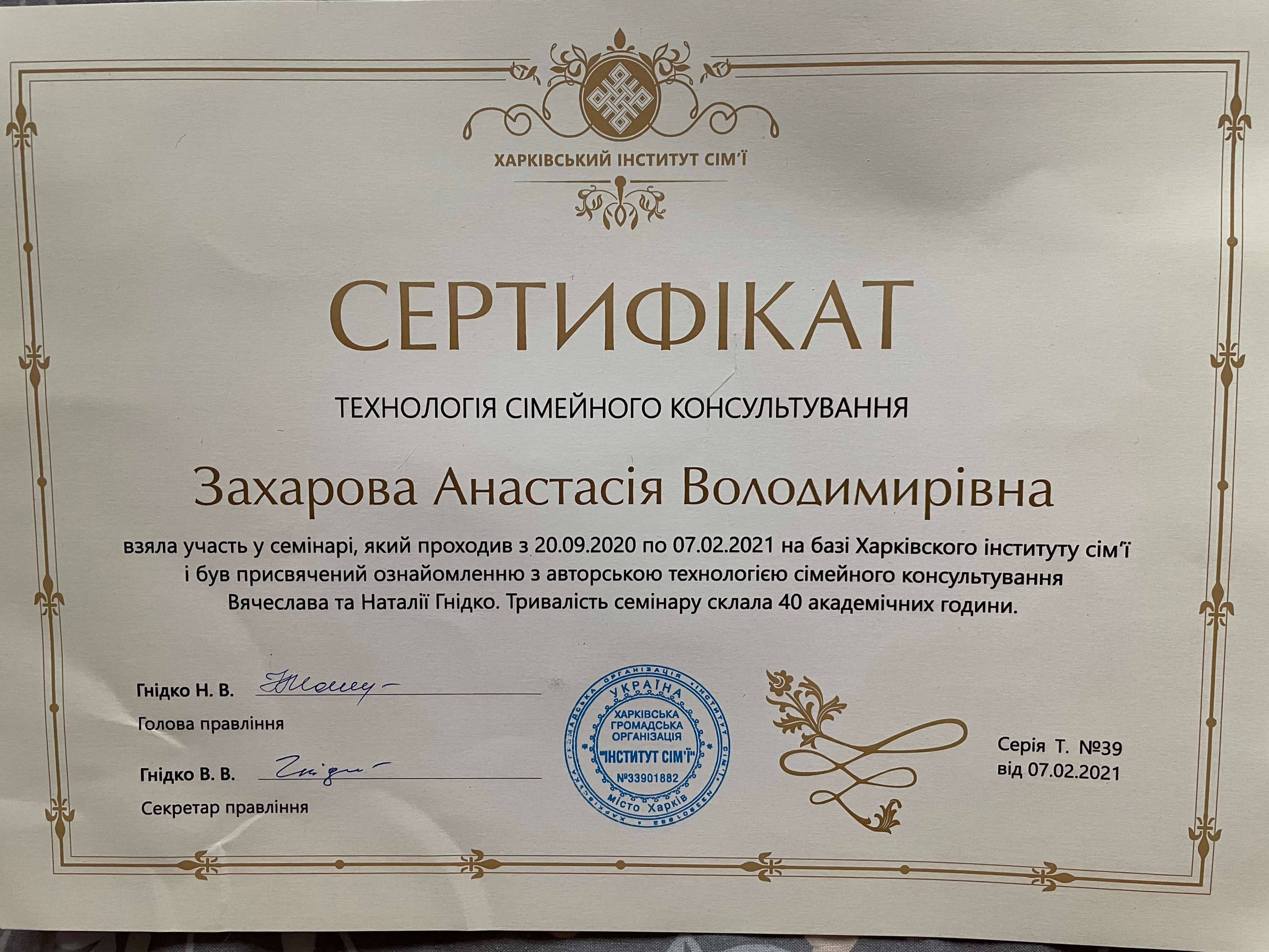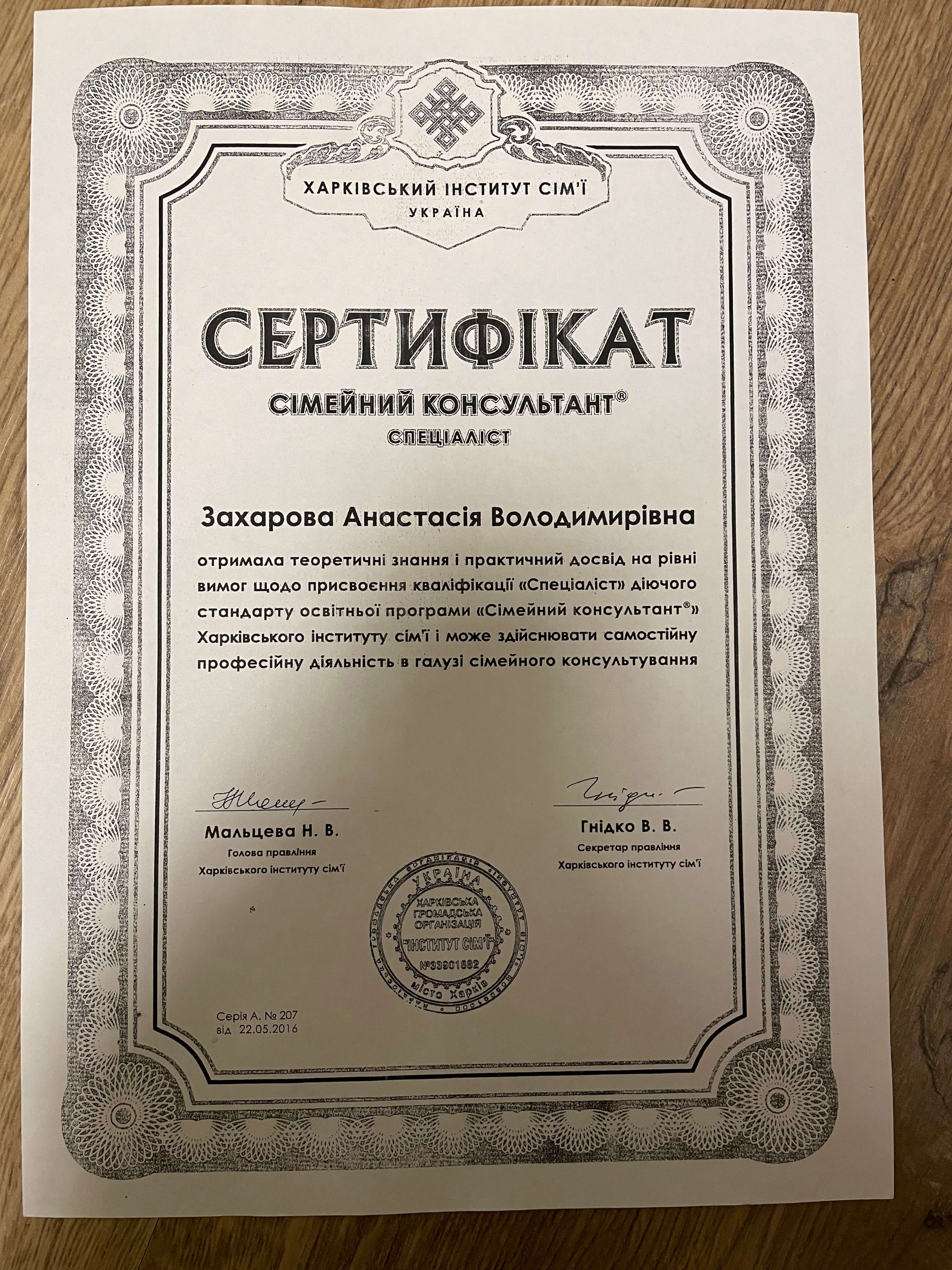Мене звуть Анастасія, і я працюю психологом уже понад 11 років. Працювала у приватній школі психологом та займалась приватною практикою консультування. Основну освіту я здобула у ХНУ імені В.М. Каразіна на факультеті психології. Додатково закінчила безліч курсів, семінарів які допомогли мені заглибитися у спеціальність та працювати ефективно.