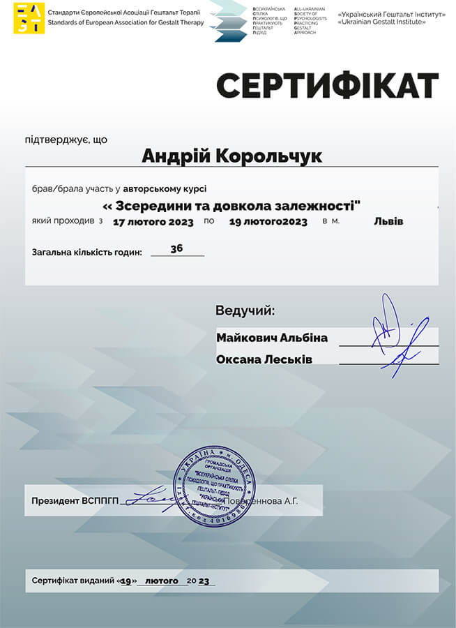 Спеціалізація «Клінічний підхід у гештальт терапії»