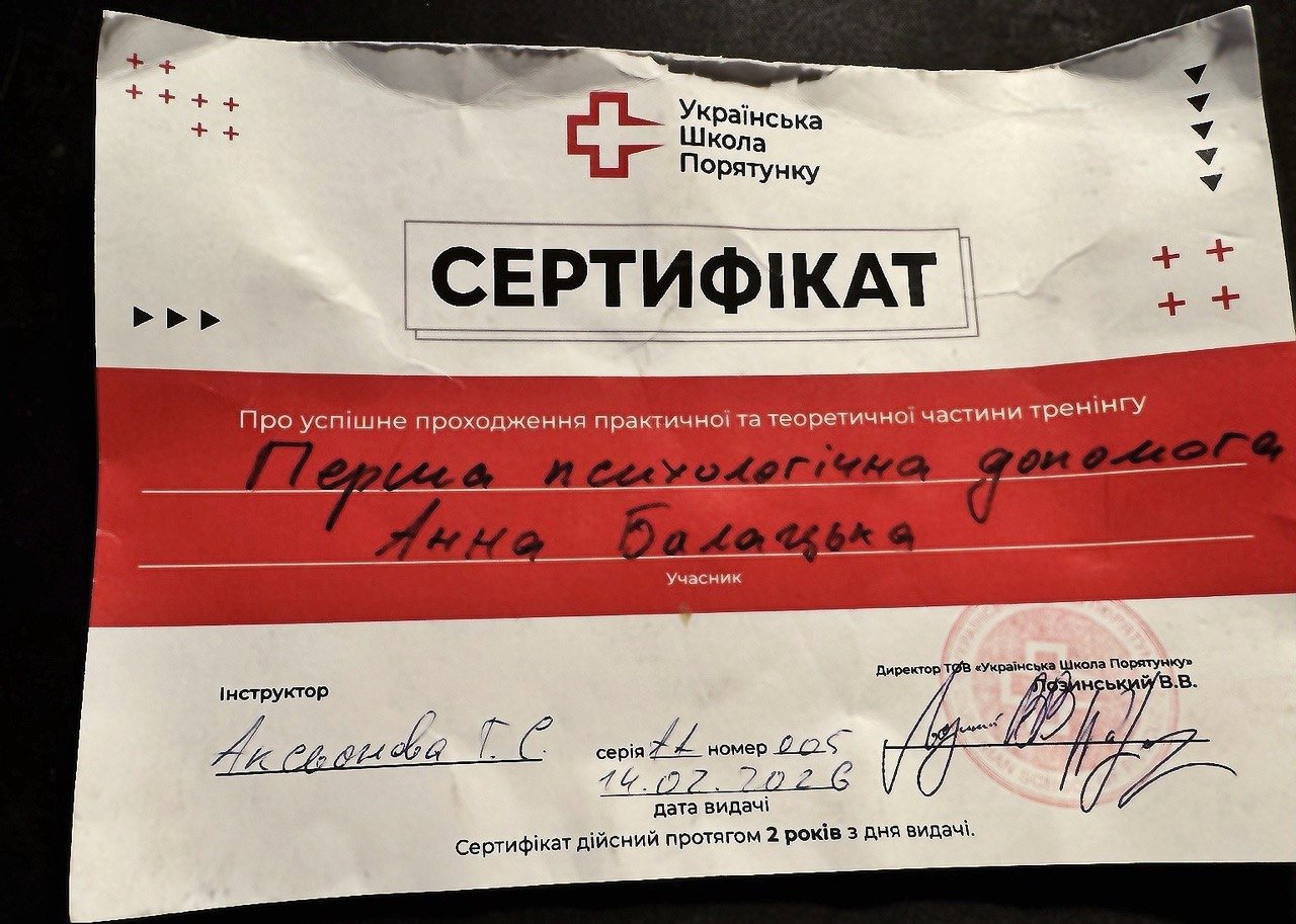 Українка, киянка, волонтерка, кохана, сестра військового та котоматуся. У психологію прийшла як клієнт у 2014 році, а згодом зрозуміла, як свою чутливість і вразливість перетворити на силу. Практикую з 2023 року, навчаюсь у КІСПП, у травні 2025 сертифікувалась як гештальт-терапевтка у спільноті НАГТУ.