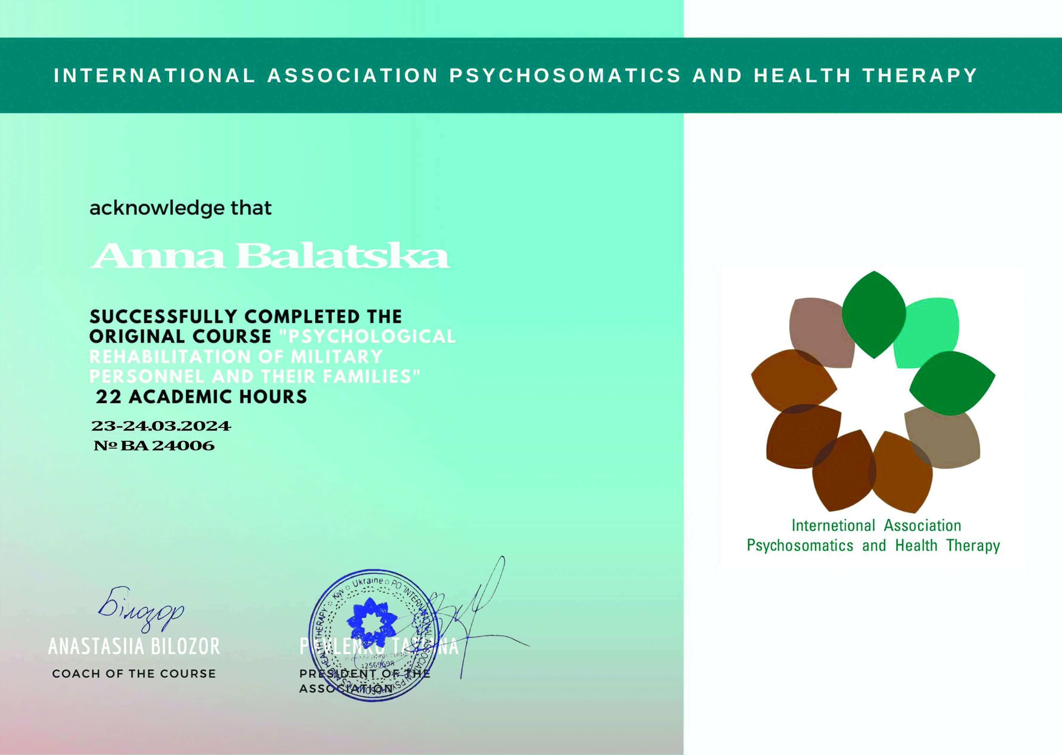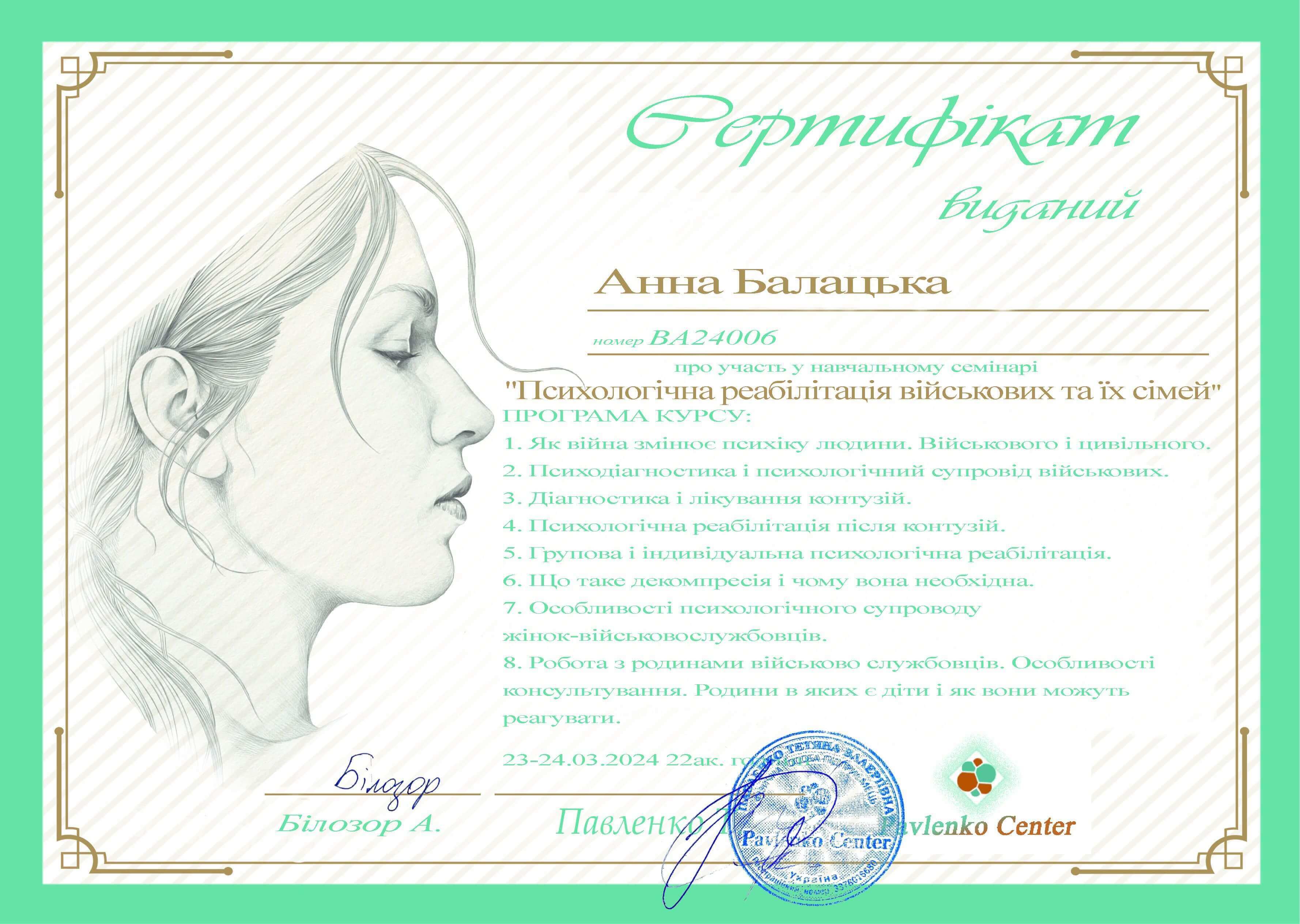 Онлайн-семінар "Психологічна реабілітація військових та їх сімей" (2024) - 22 години